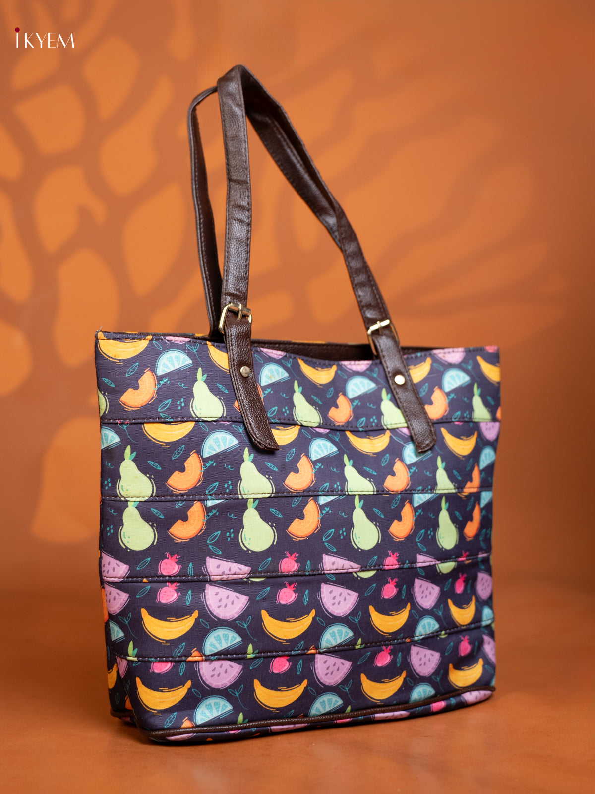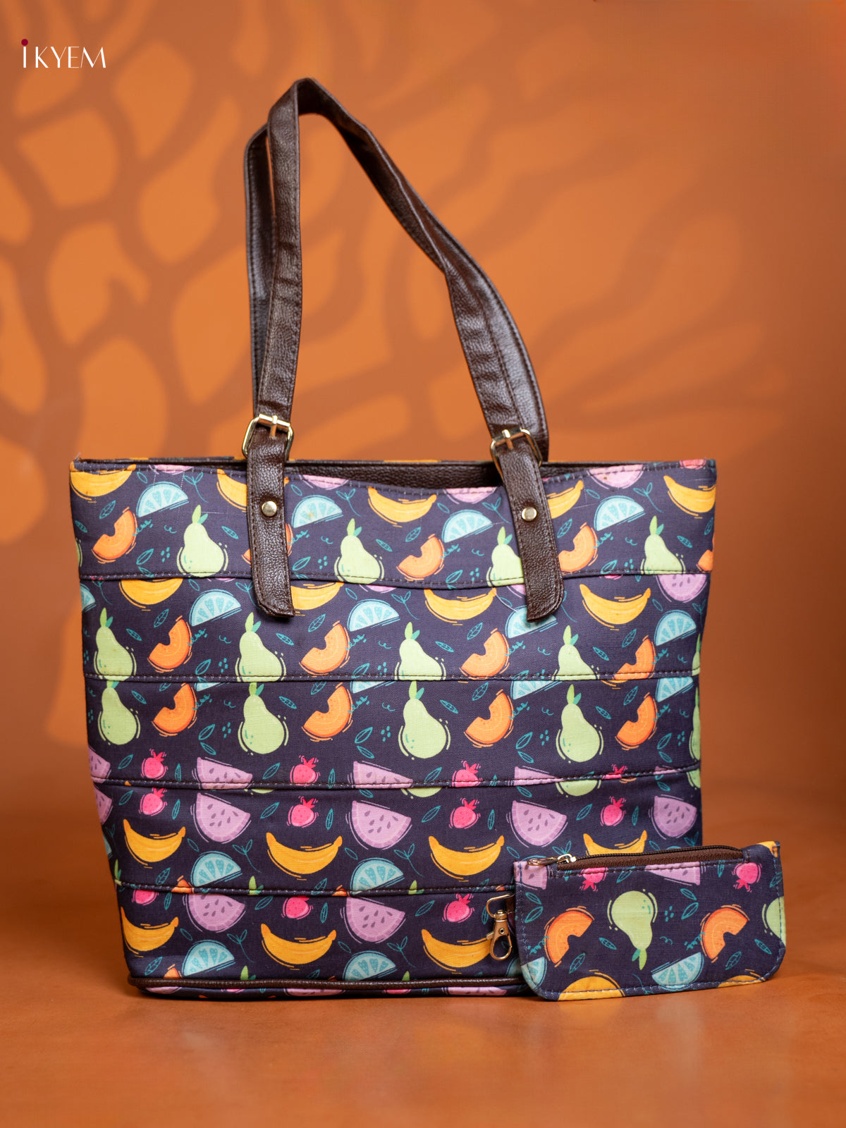 Printed Unicorn Tote Bag & Small Pouch with 3 compartments - Navy Blue - KE16378