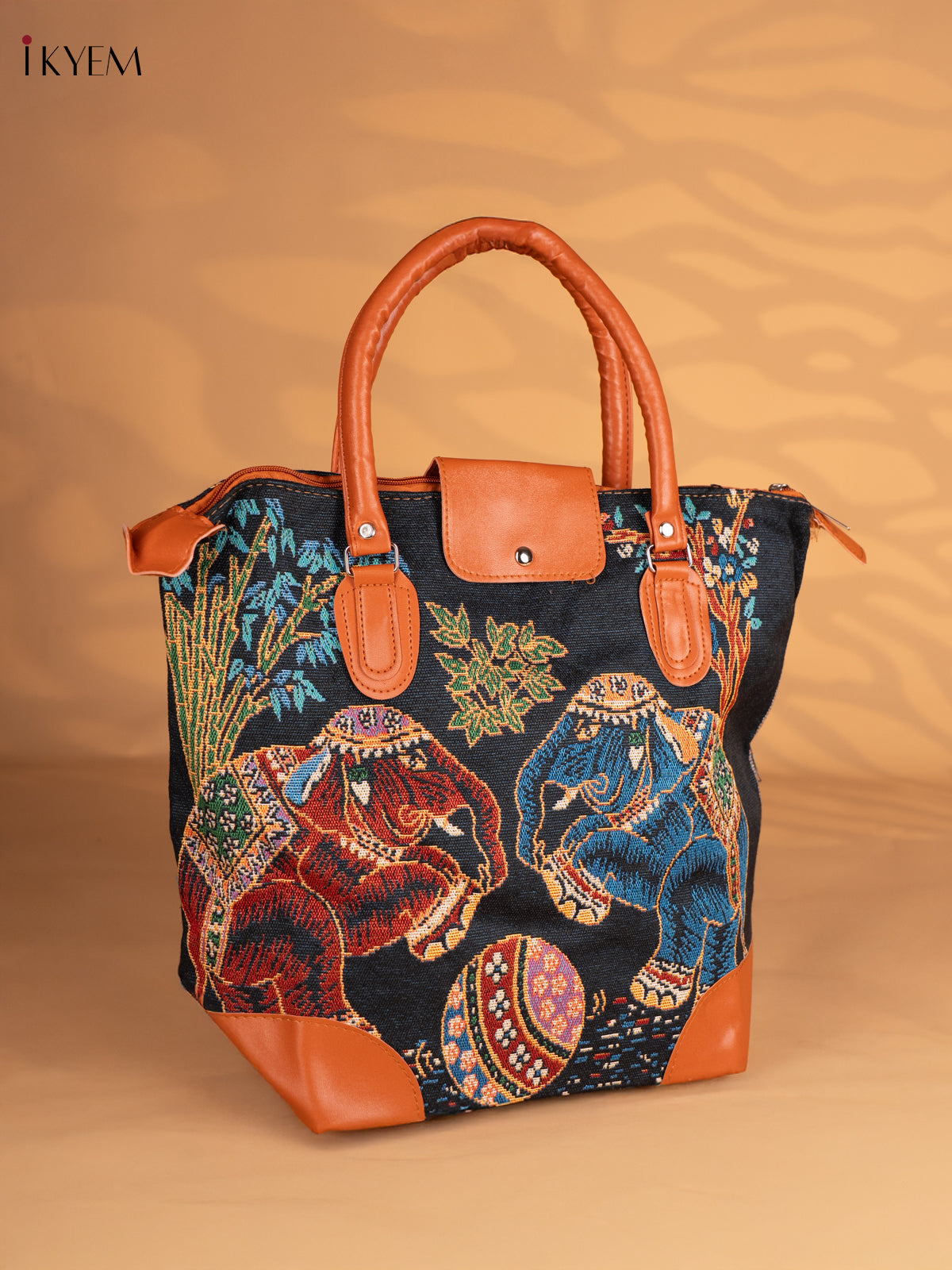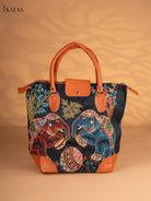 Dual Elephant Printed Tote Bag - Black - KN05159