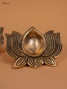 - This elegant set of 2 Brass Lotus Diyas features an antique finish. Made of durable brass, these beautiful lotus-inspired candle holders are perfect for creating a warm, inviting ambiance in any room.