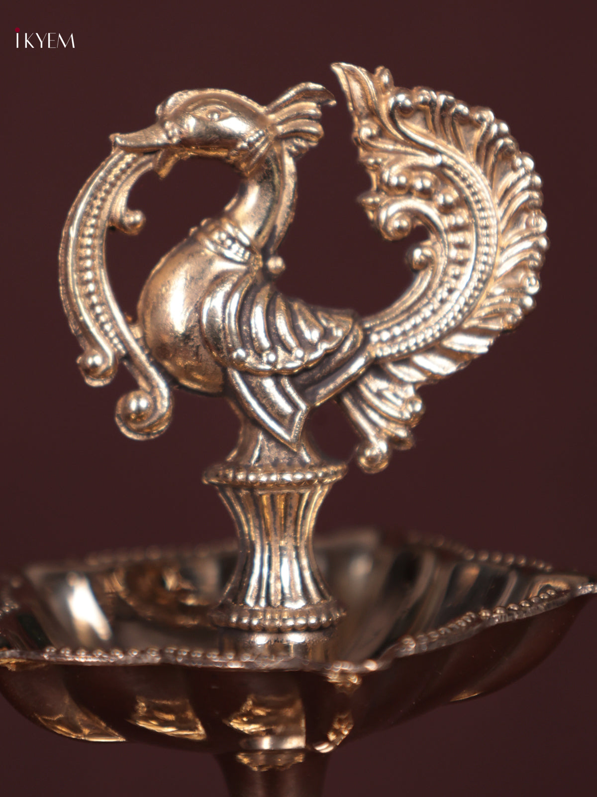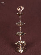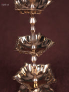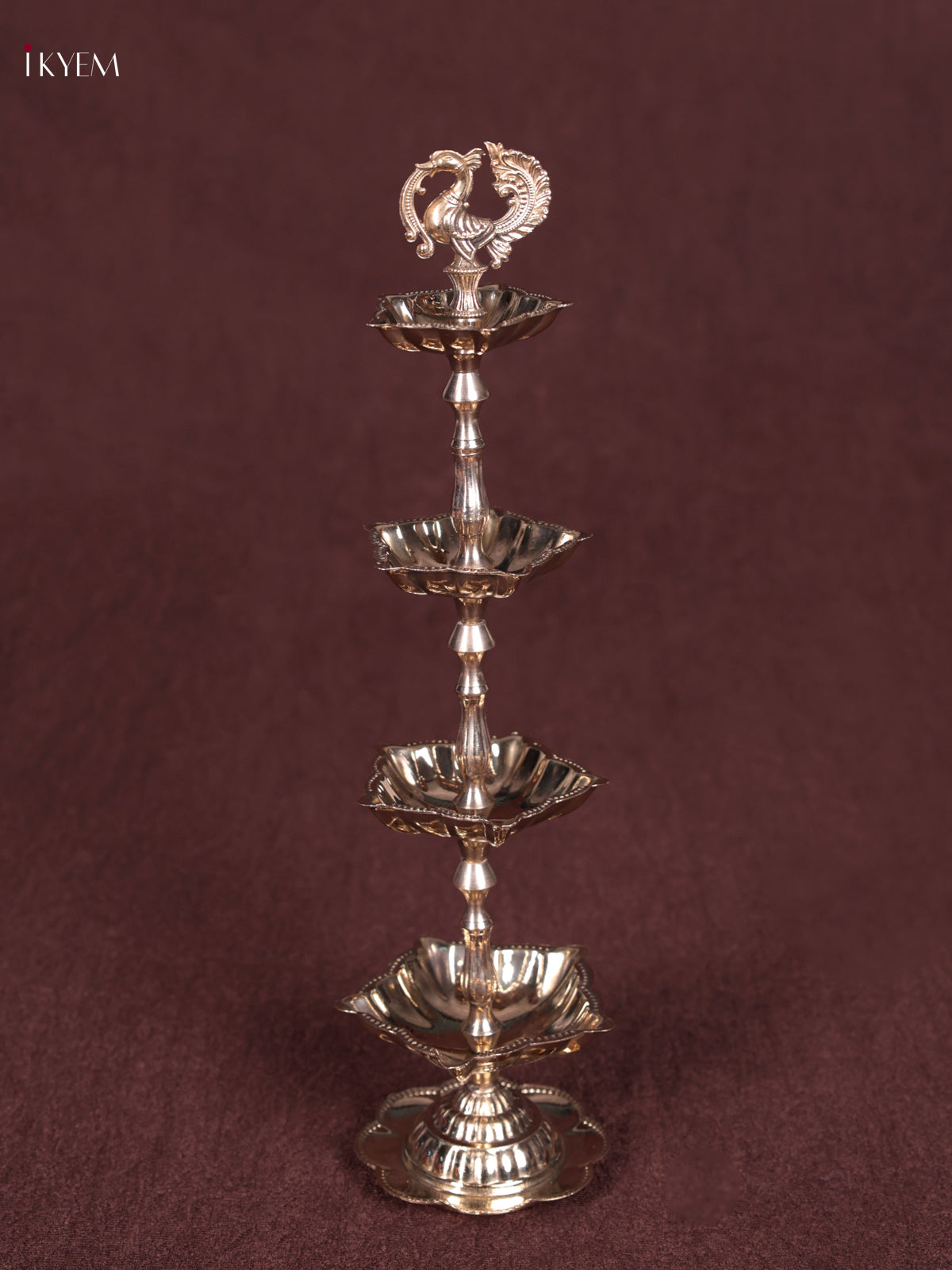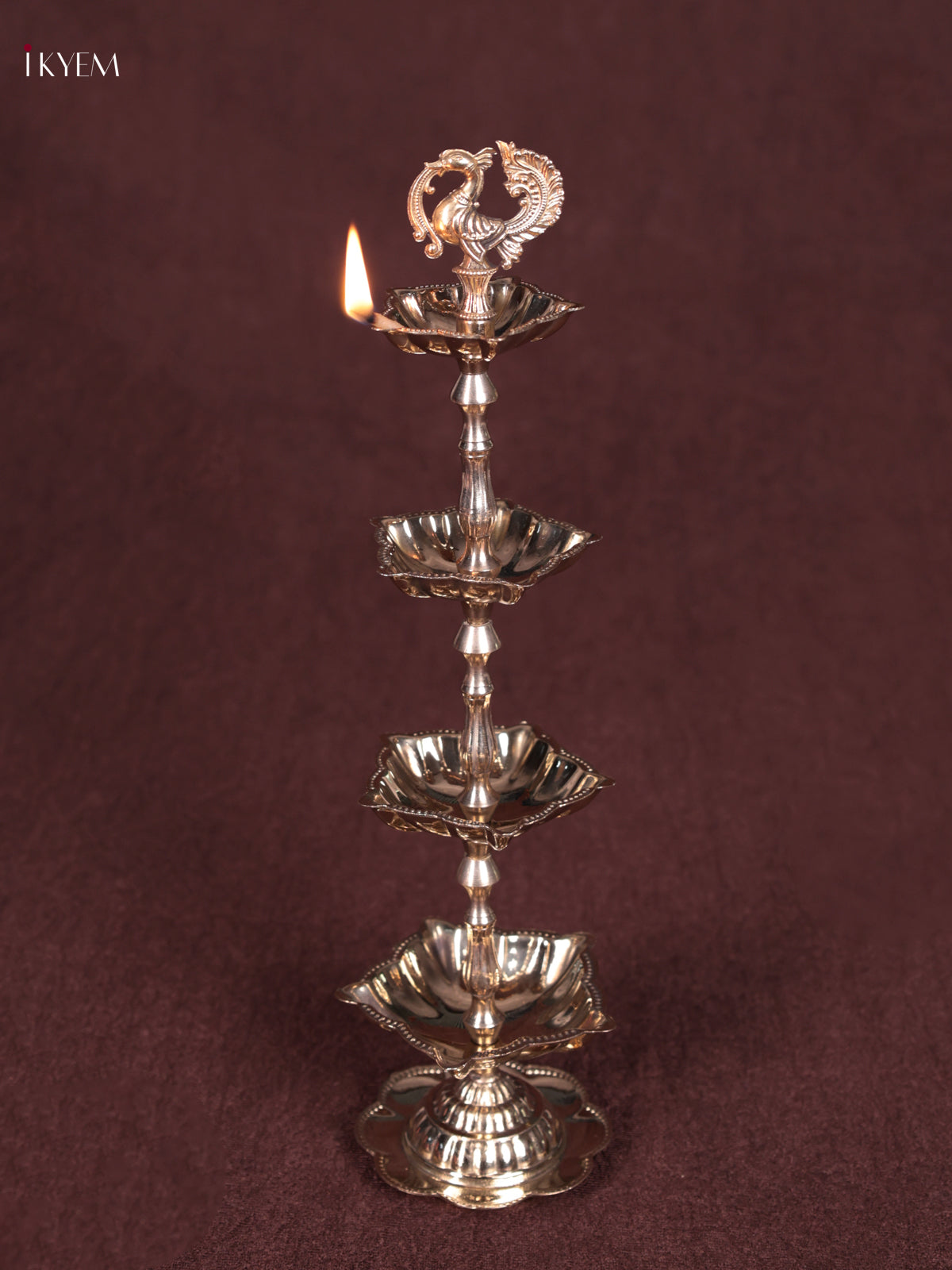 - This Brass Four Step Diya with Annam (Swan) design is a traditional multi-tier oil lamp used for spiritual rituals, festive lighting, and decorative purposes