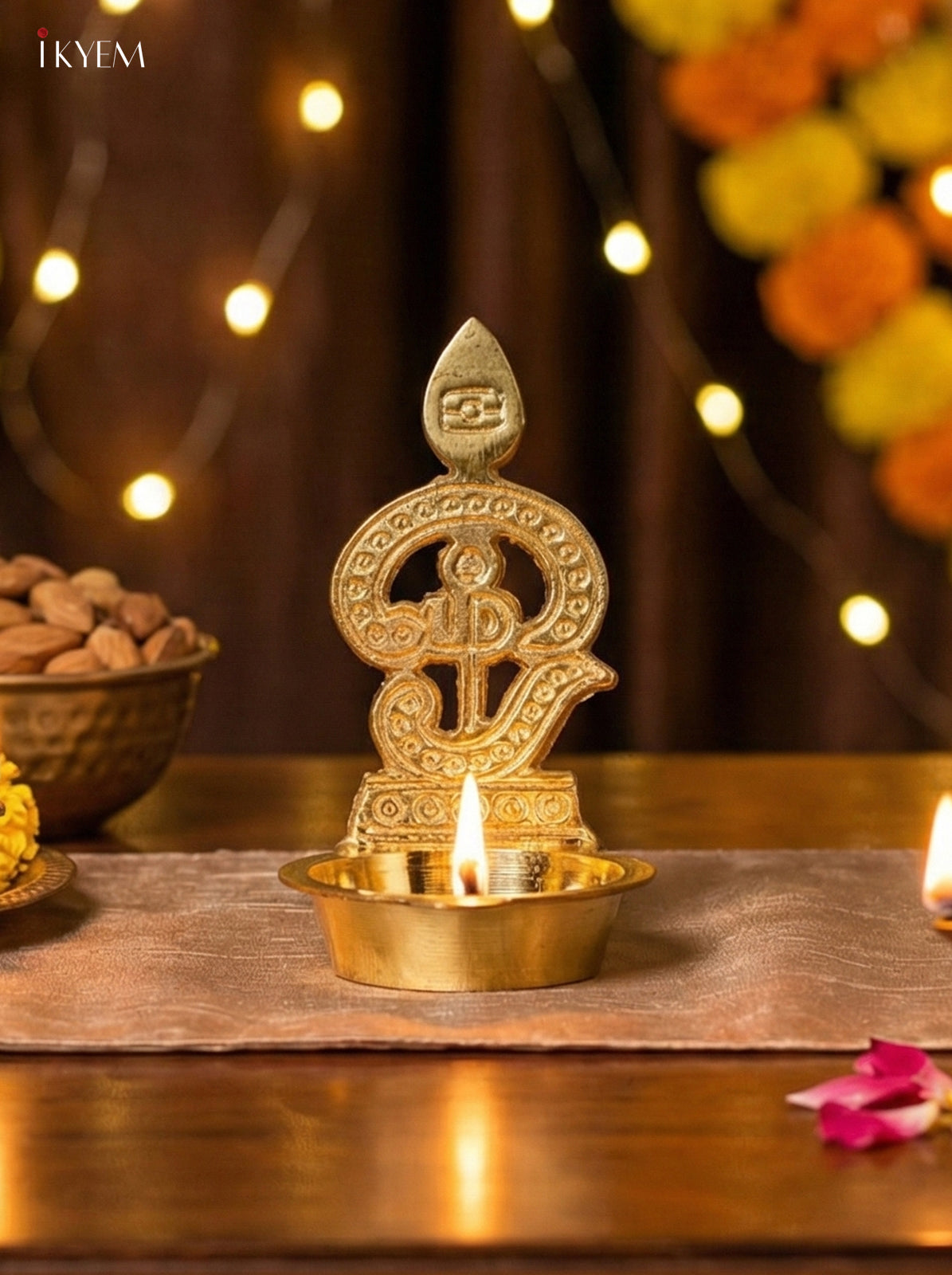 Enhance your spiritual space with the Brass Om Vel Diya , a beautifully crafted traditional brass oil lamp featuring the sacred Om symbol, representing harmony and devotion. With 4(In) height, 3(In) breadth, and 2.5(In) length and weighing 80 g, it’s perfect for daily pooja, aarti lighting, and festive decor.
