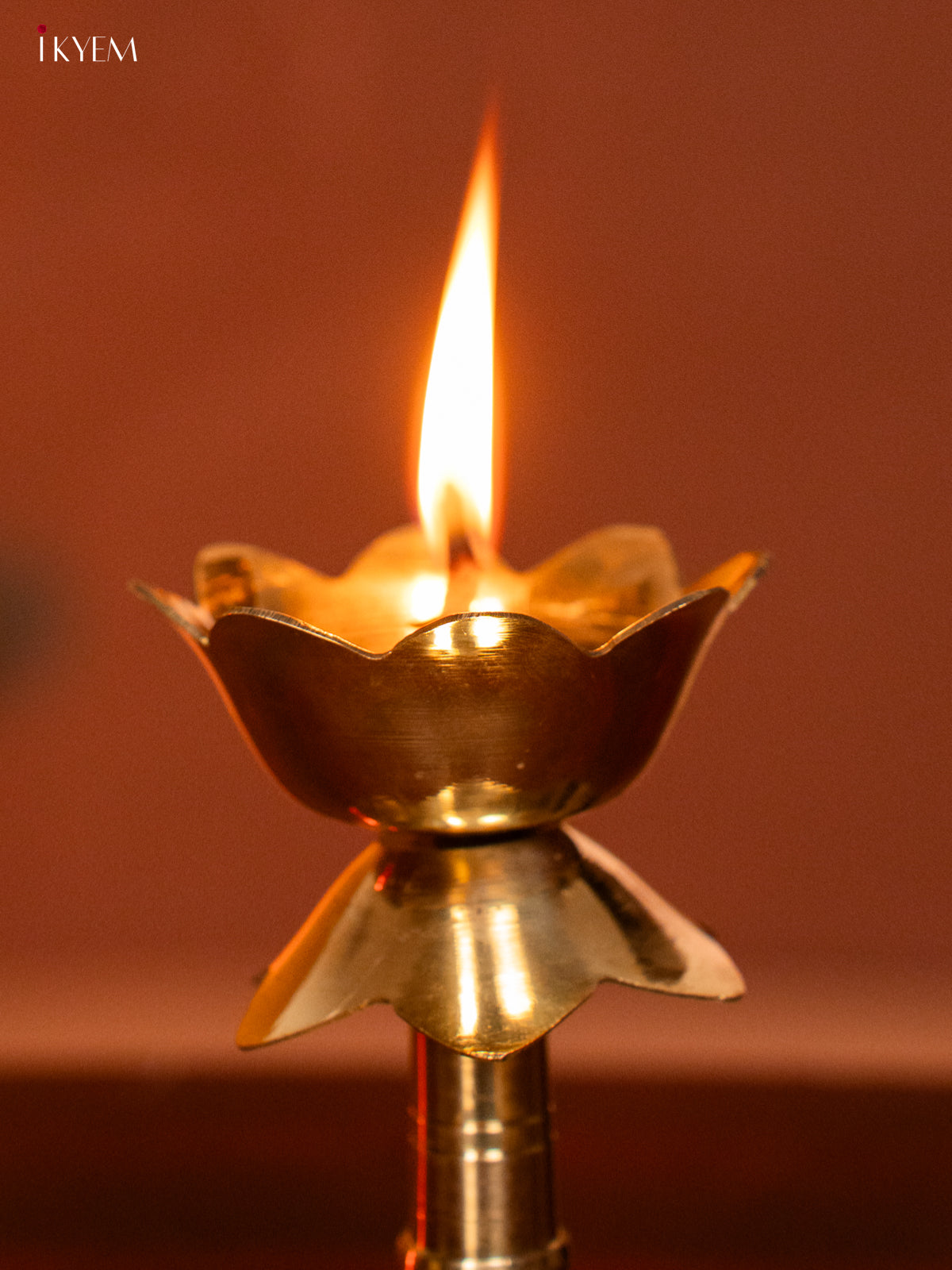 Brass Lotus Akhand Diya with Stand - 4.5 Inch - KH18195