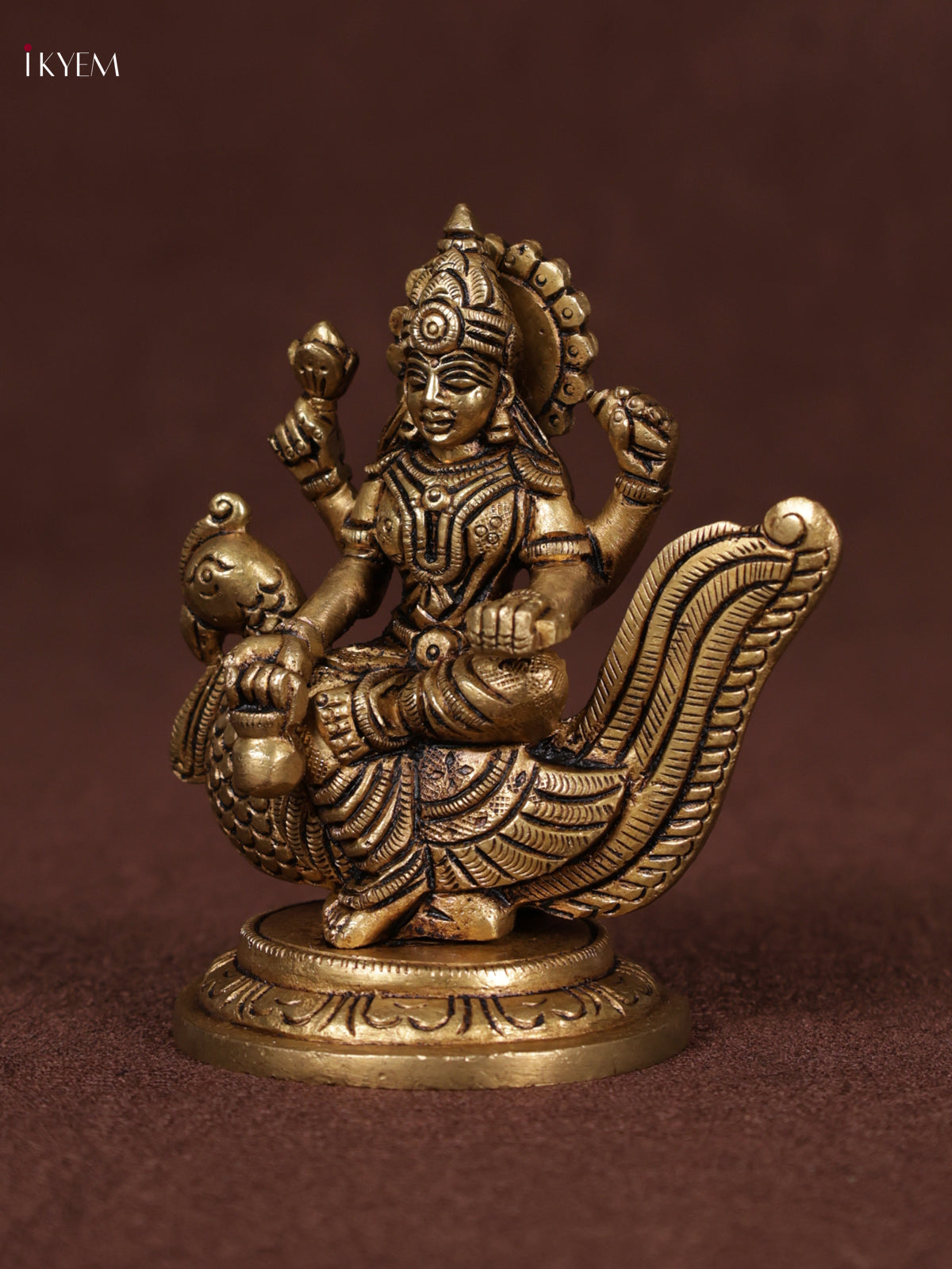 Brass Goddess Gayatri Sitting on Swan Idol - KEA3130