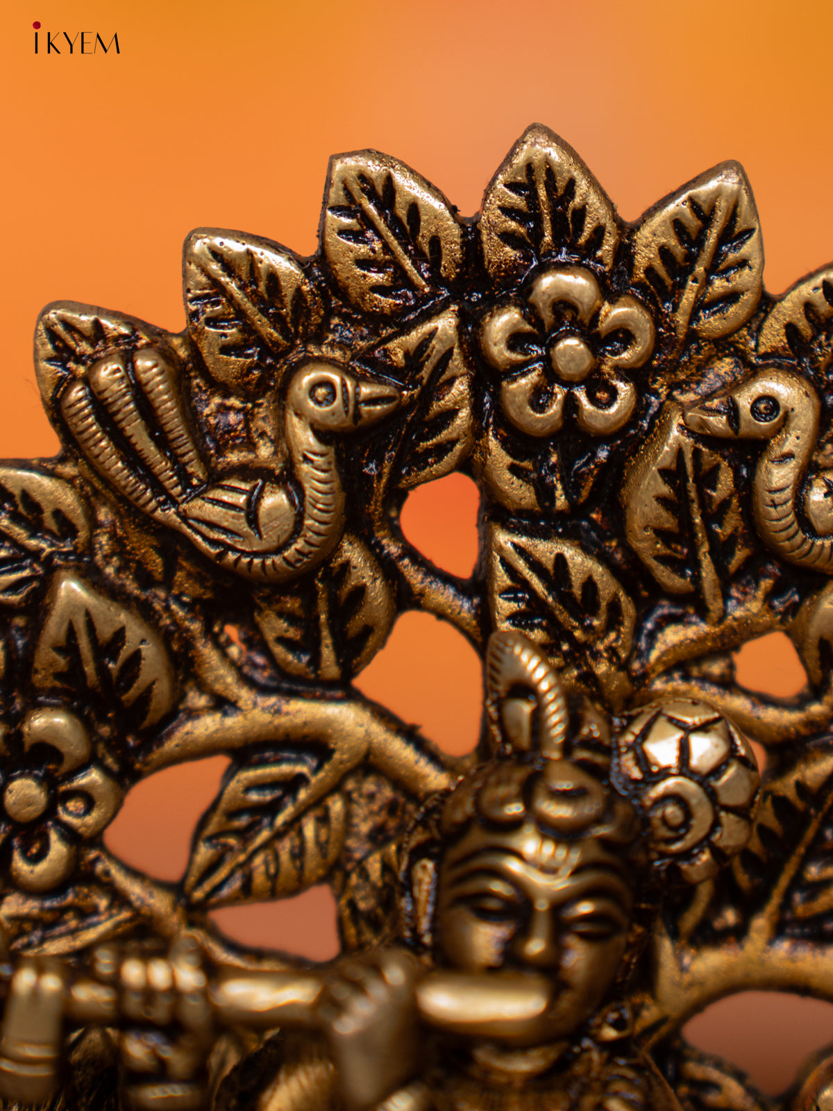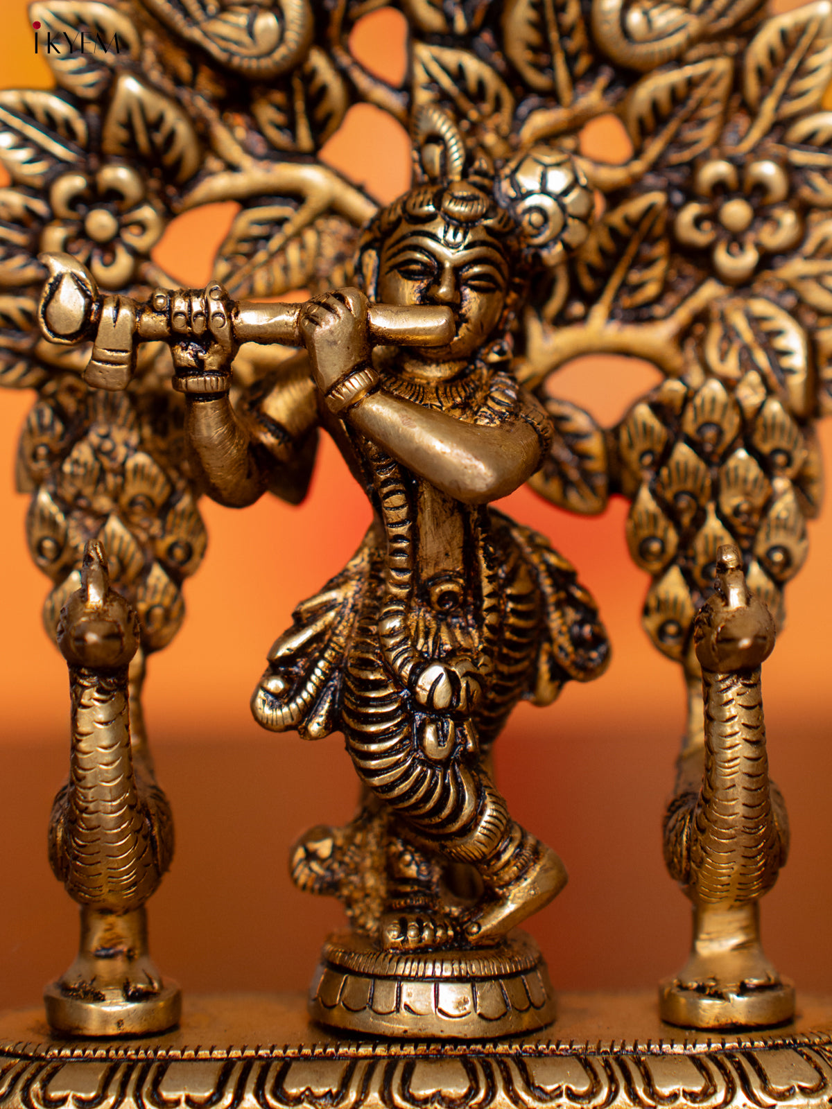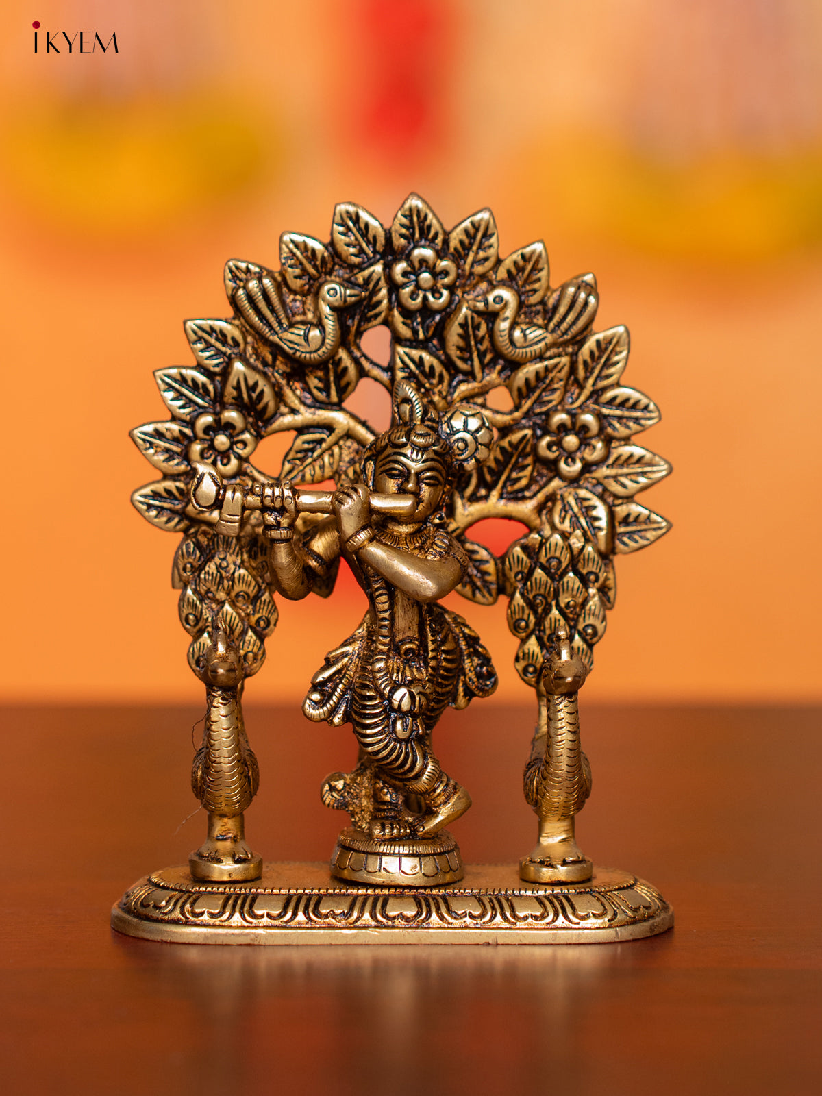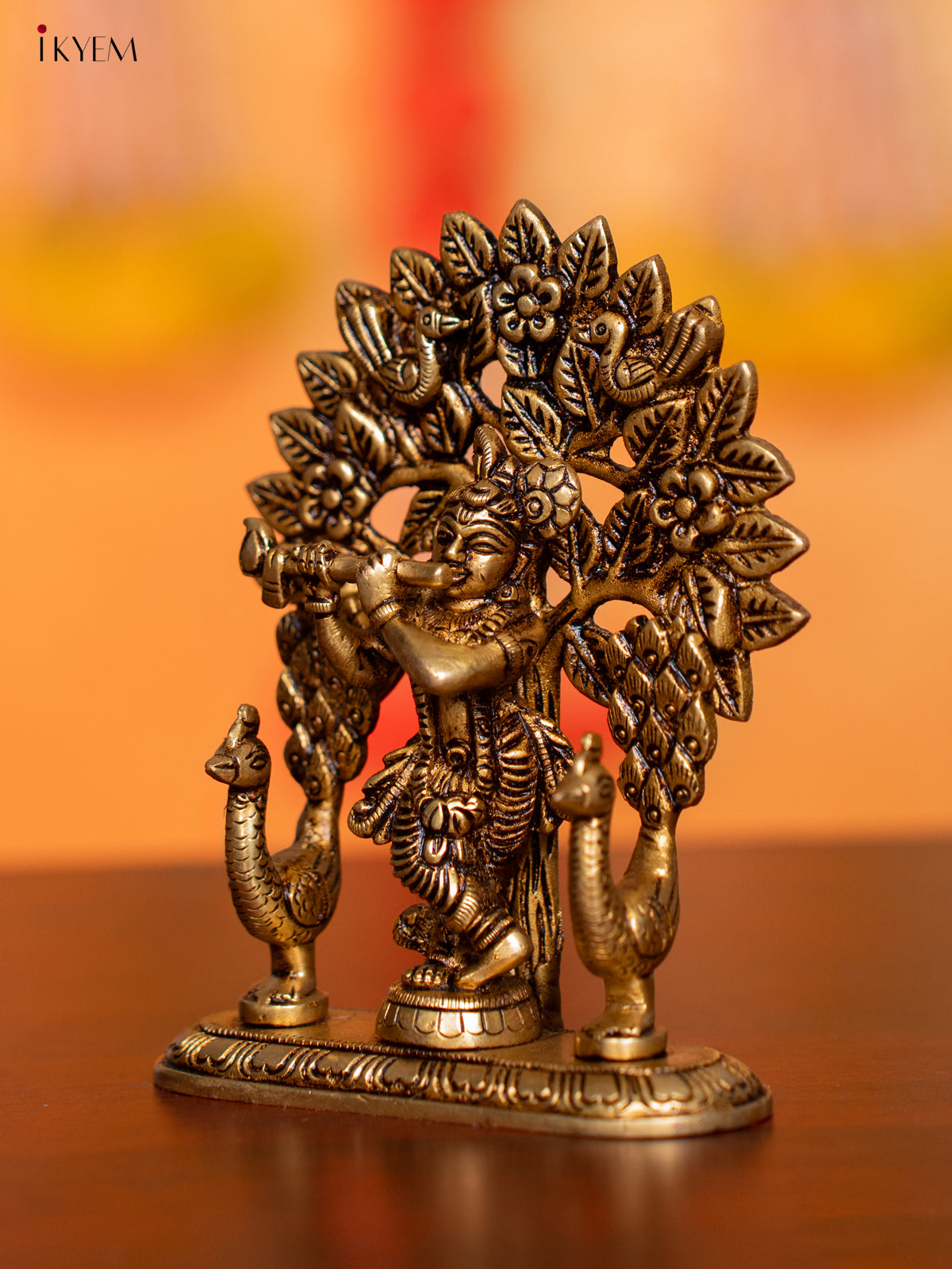 Brass Krishana with Tree & Peacock Idol - 5 Inch - KI07151