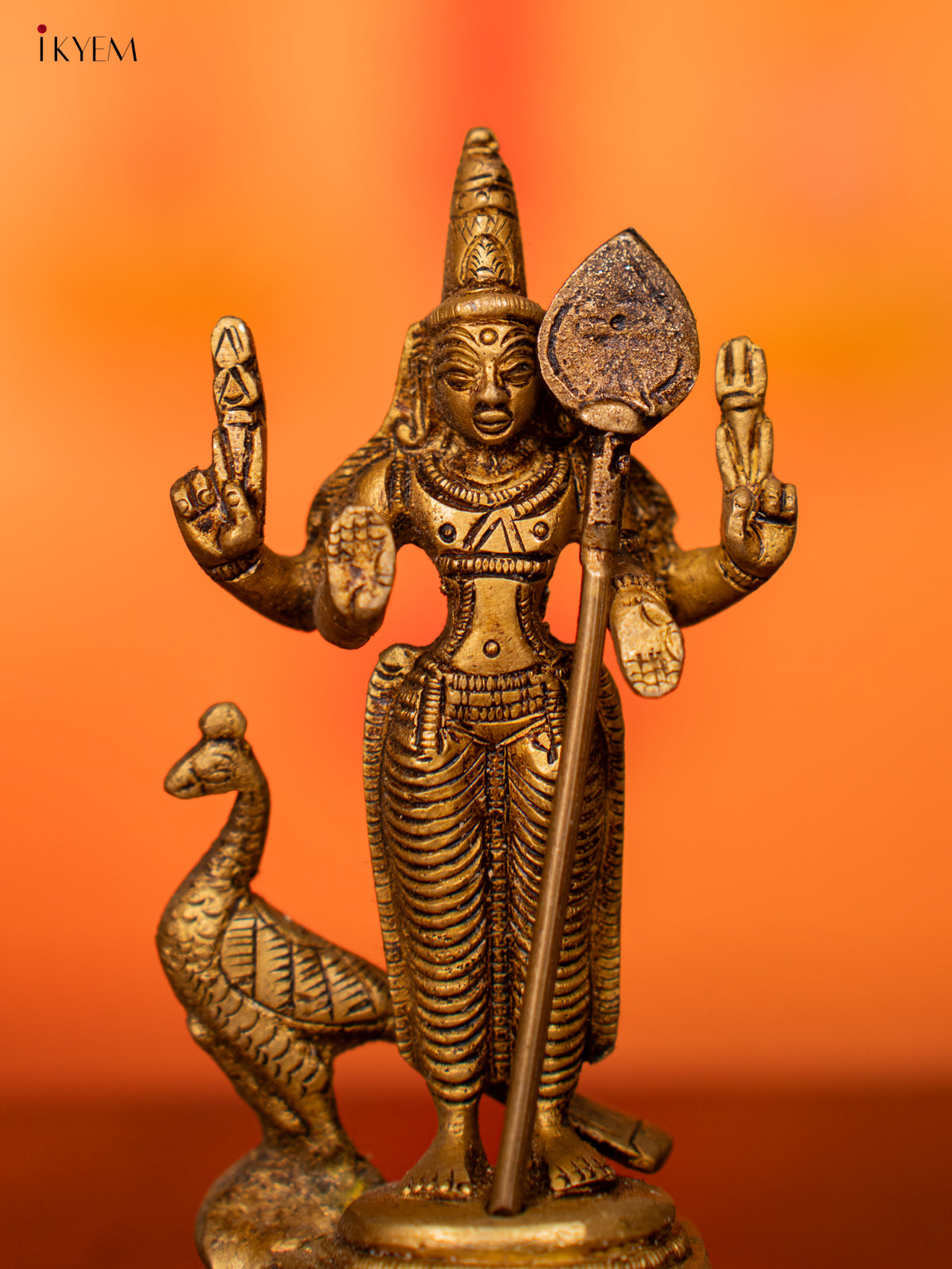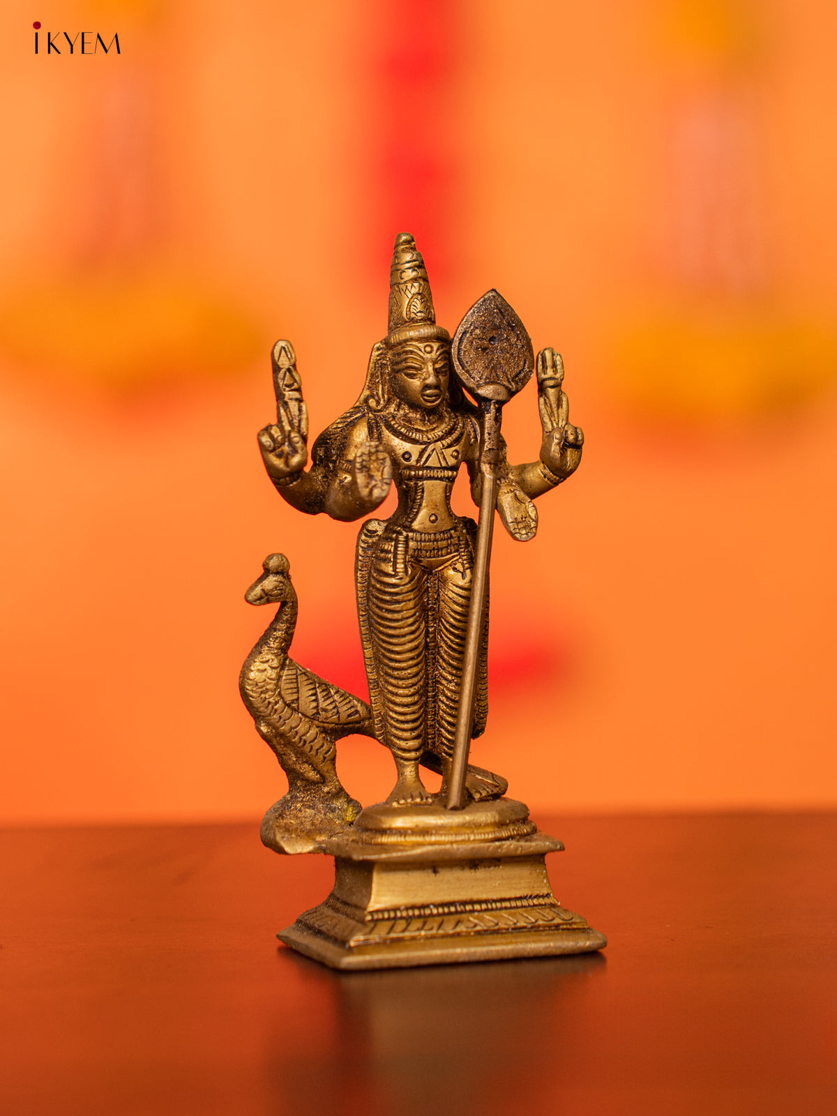 Brass Murugar with Peacock Idol - 3.5 Inch - KI07132