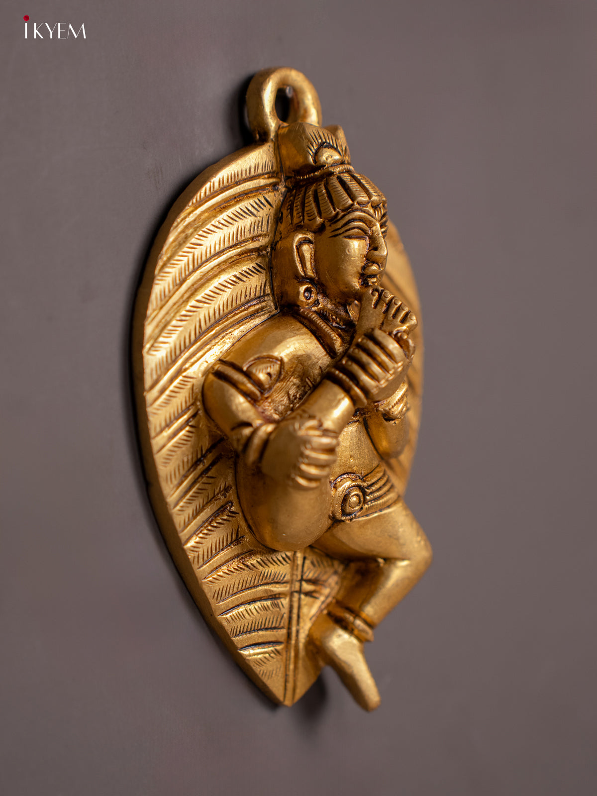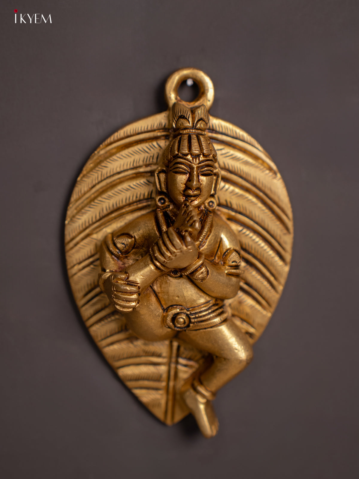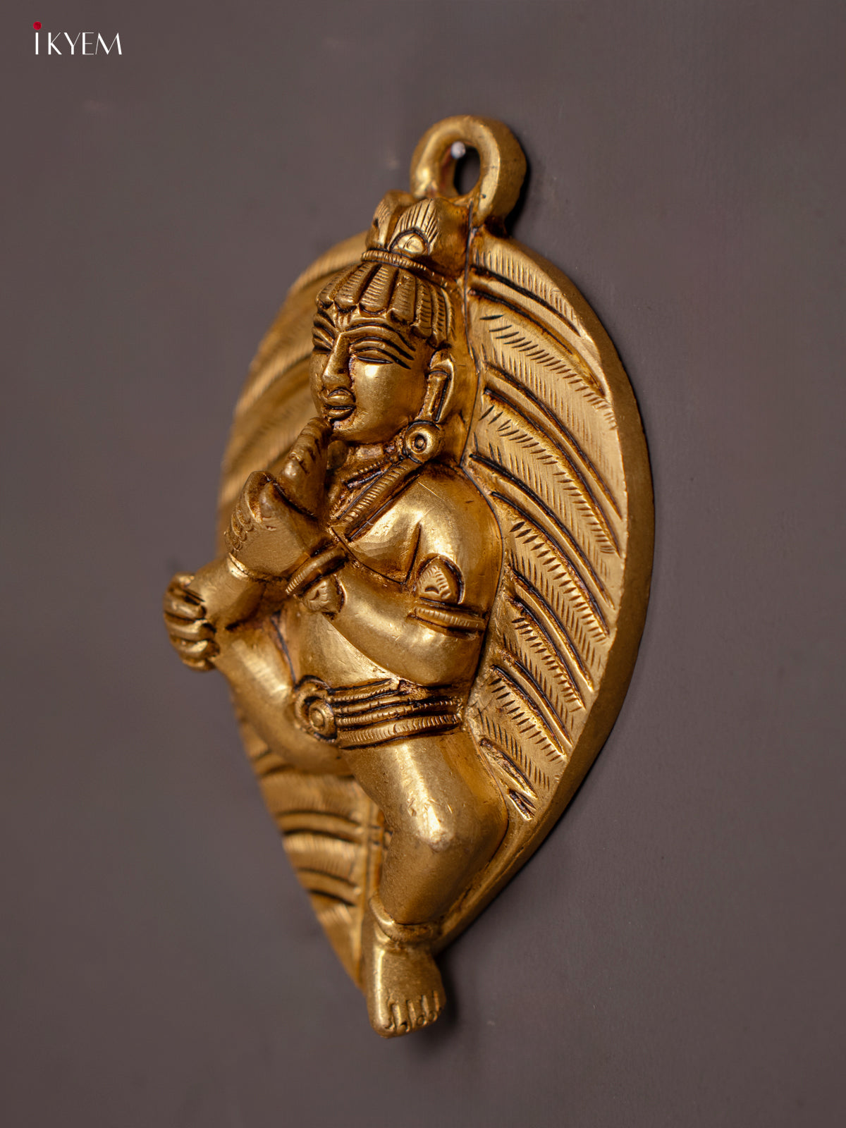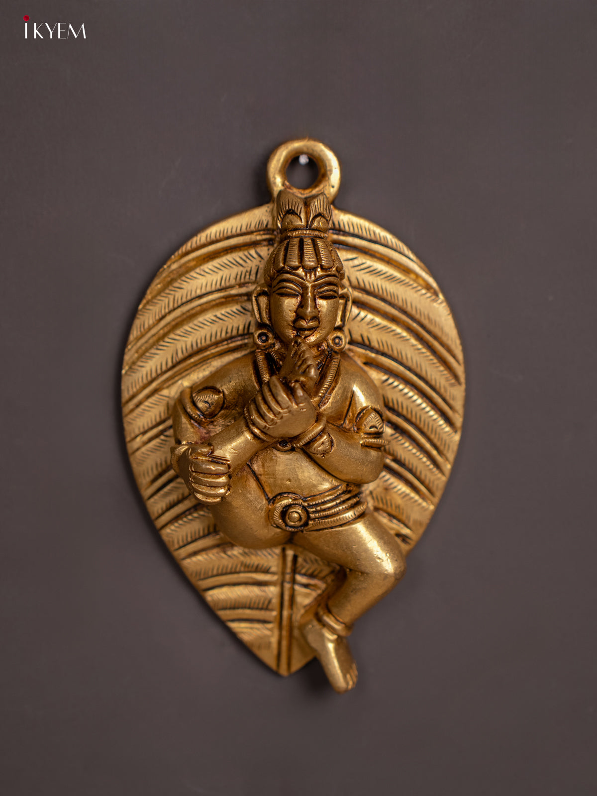 Brass Baby Krishna with Banyan Leaf - 4.5 Inch - KI07157