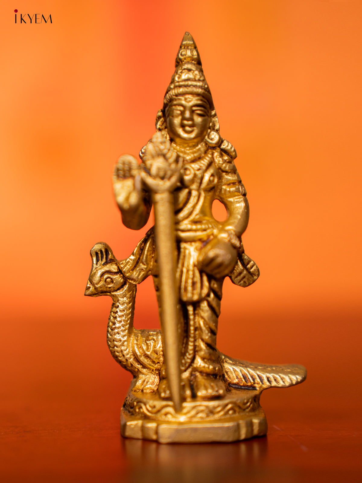- This 3.5-inch Brass Murugar with Peacock Idol is an elegant addition for pooja ceremonies and spiritual decor.