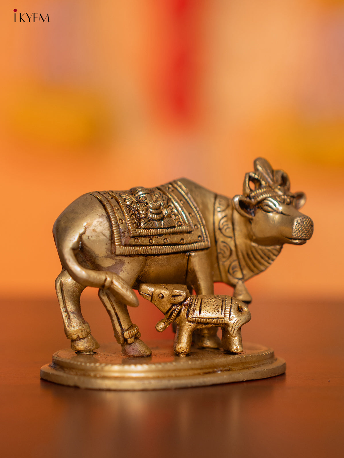 - This 2.5-inch Brass Cow & Calf figurine is an elegant addition for pooja spaces, home décor, or as a thoughtful gift.