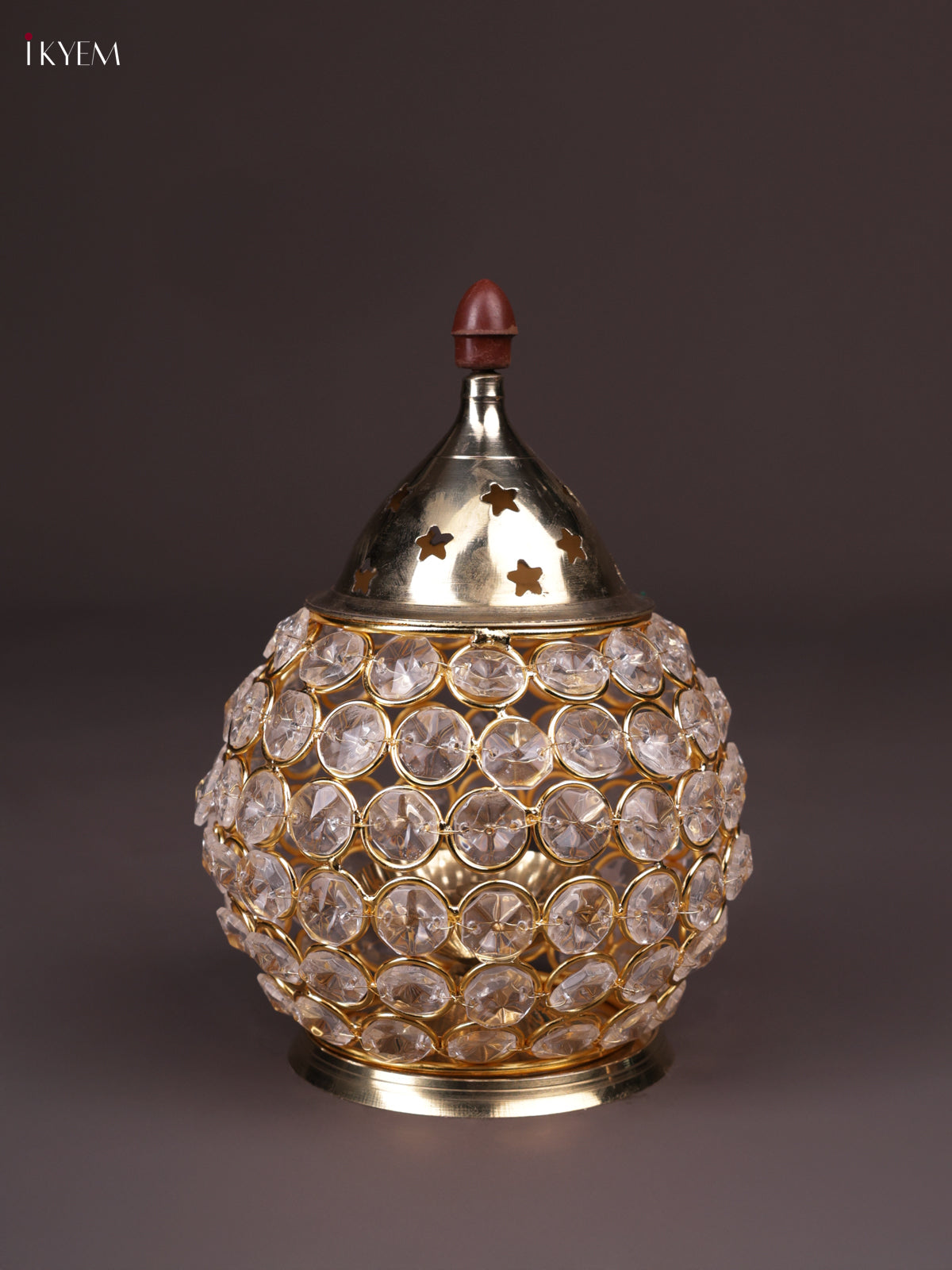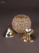 - The Brass Round Crystal Diya is designed for both utility and aesthetic appeal