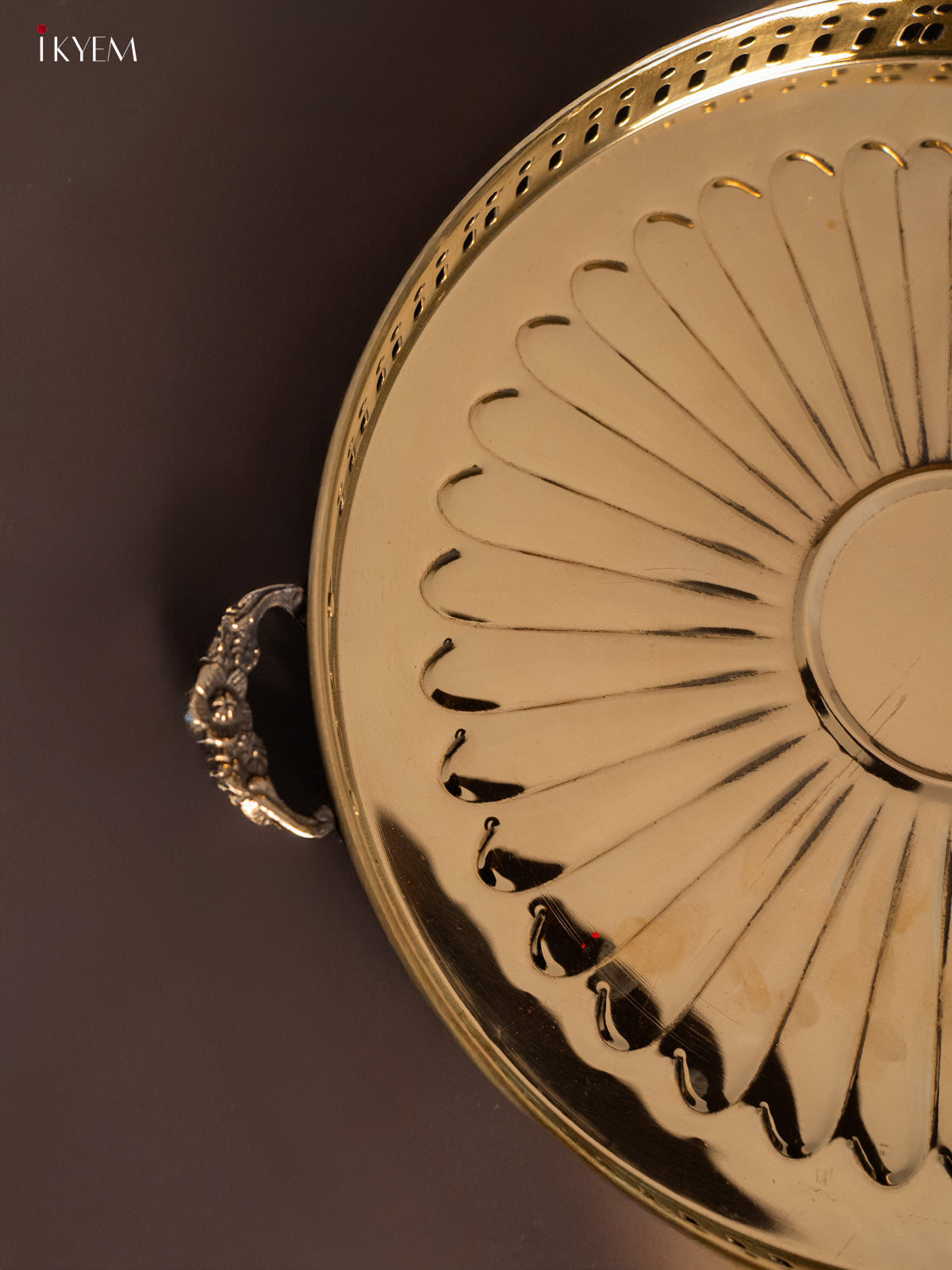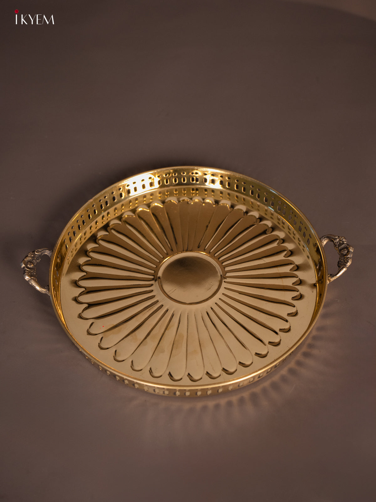 • This premium round brass tray, measuring 12x12 inches, is designed for pooja and other ceremonial uses.