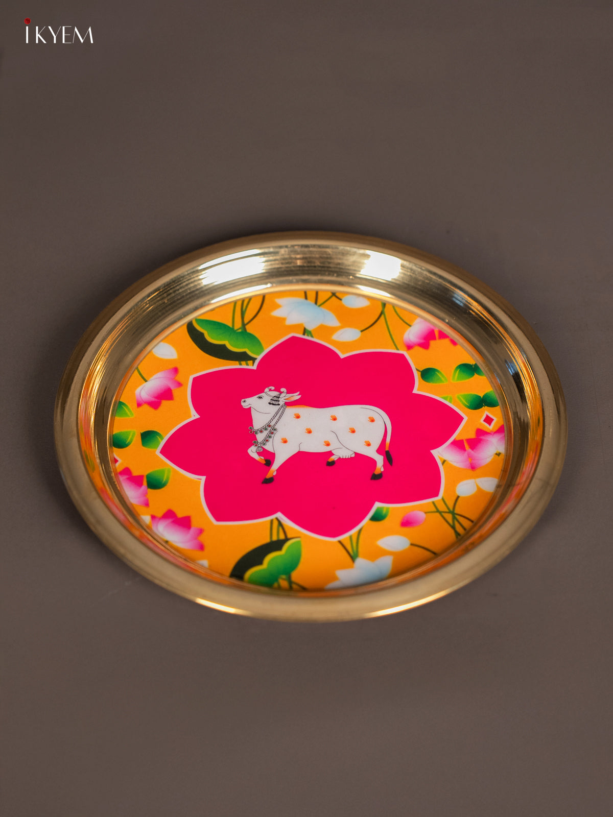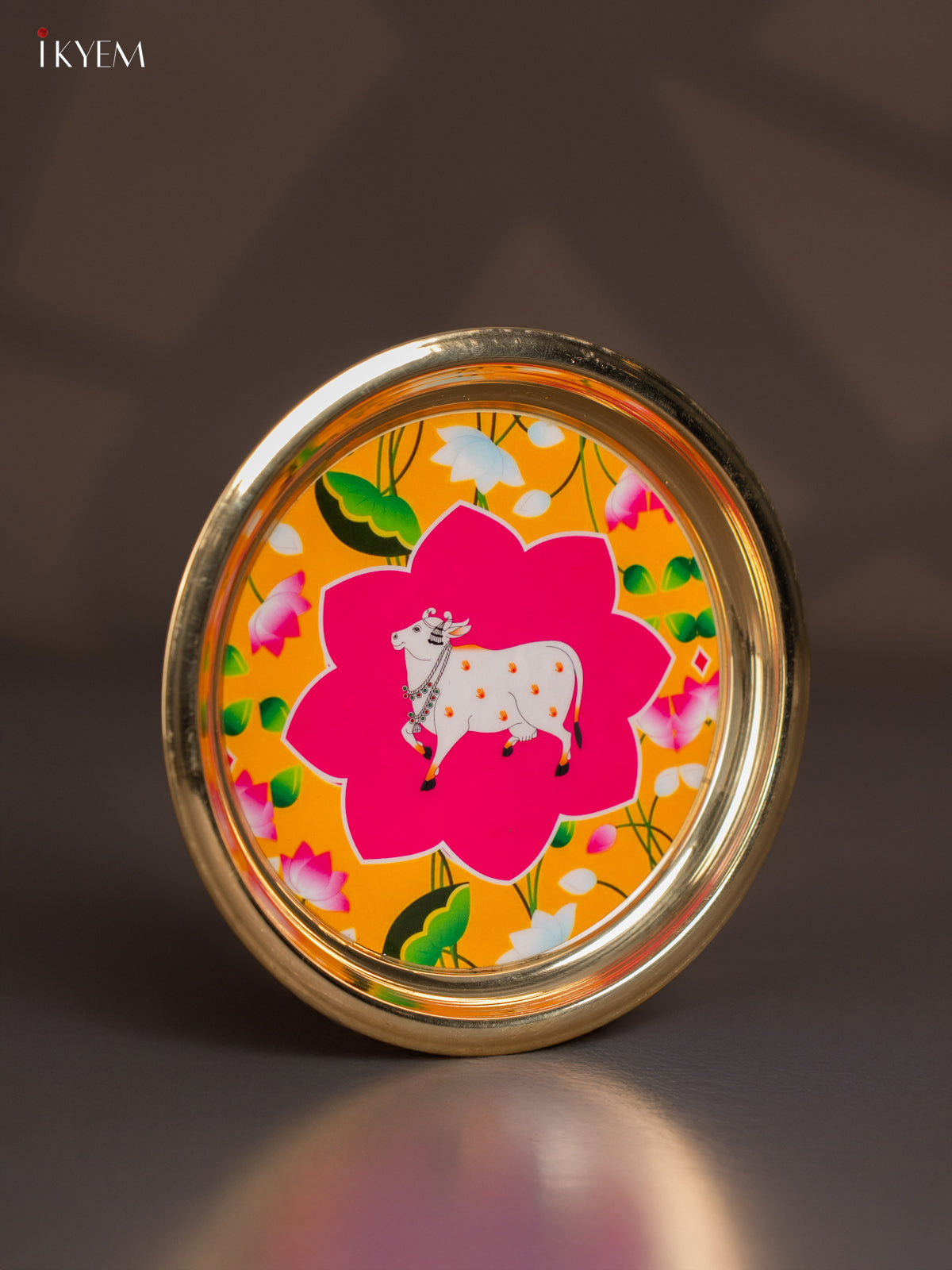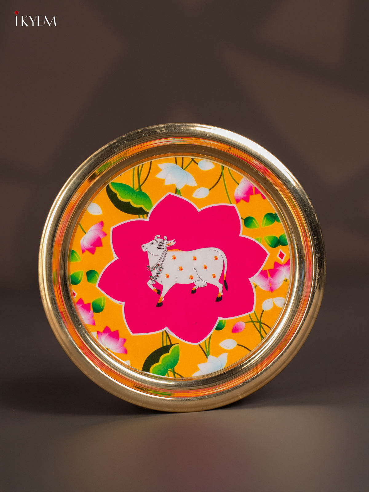 Cow Digital Printed Brass Plate – Yellow Pink - 6 Inch - KK11141