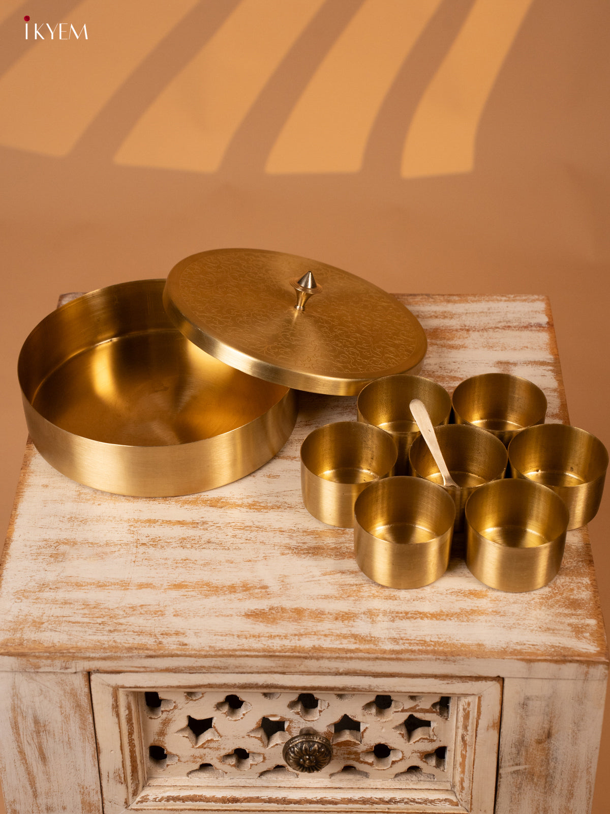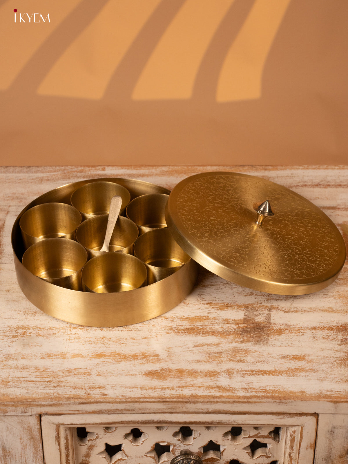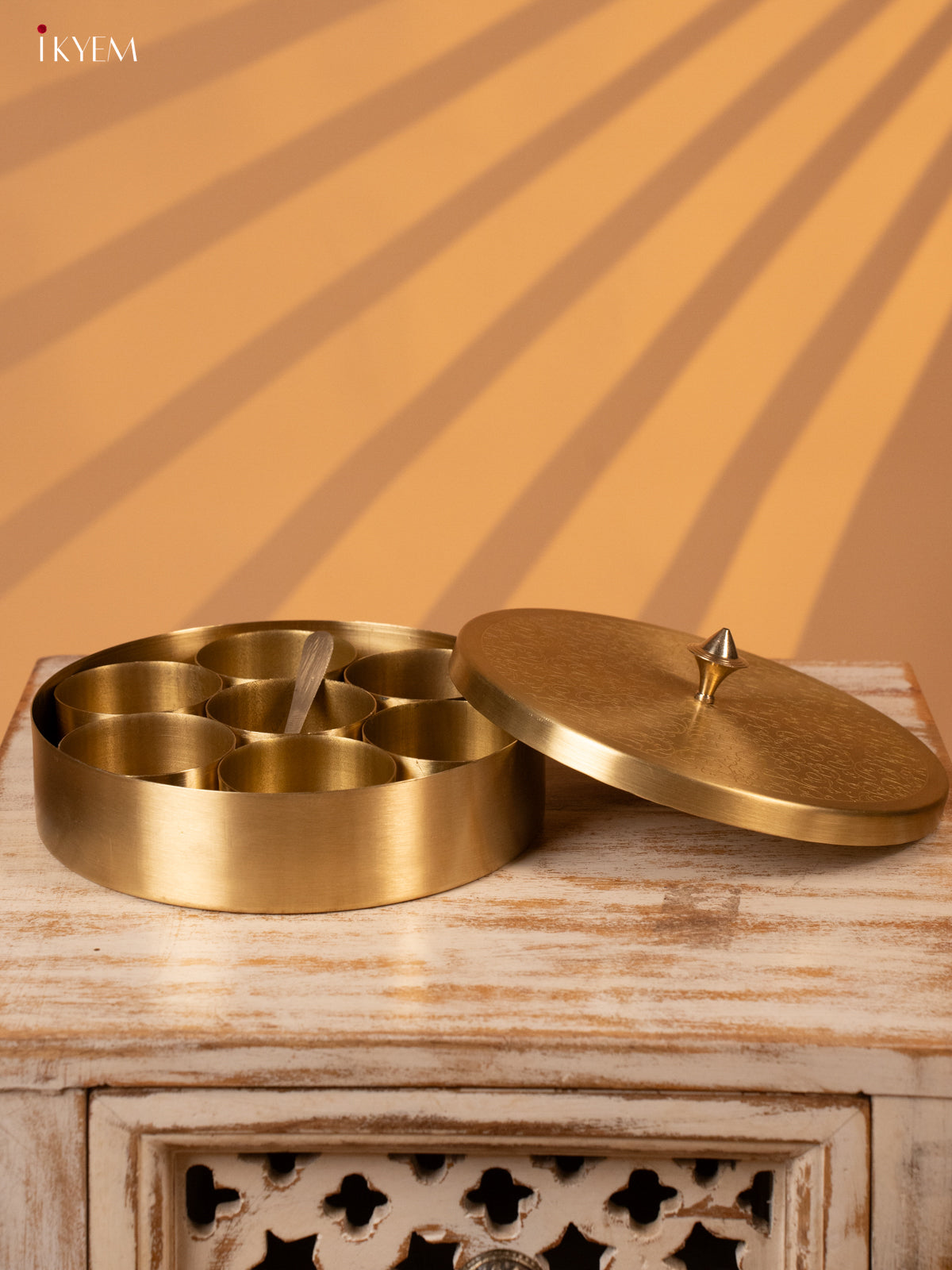- Crafted from high-quality brass, this Masala Box is the perfect addition to any kitchen.