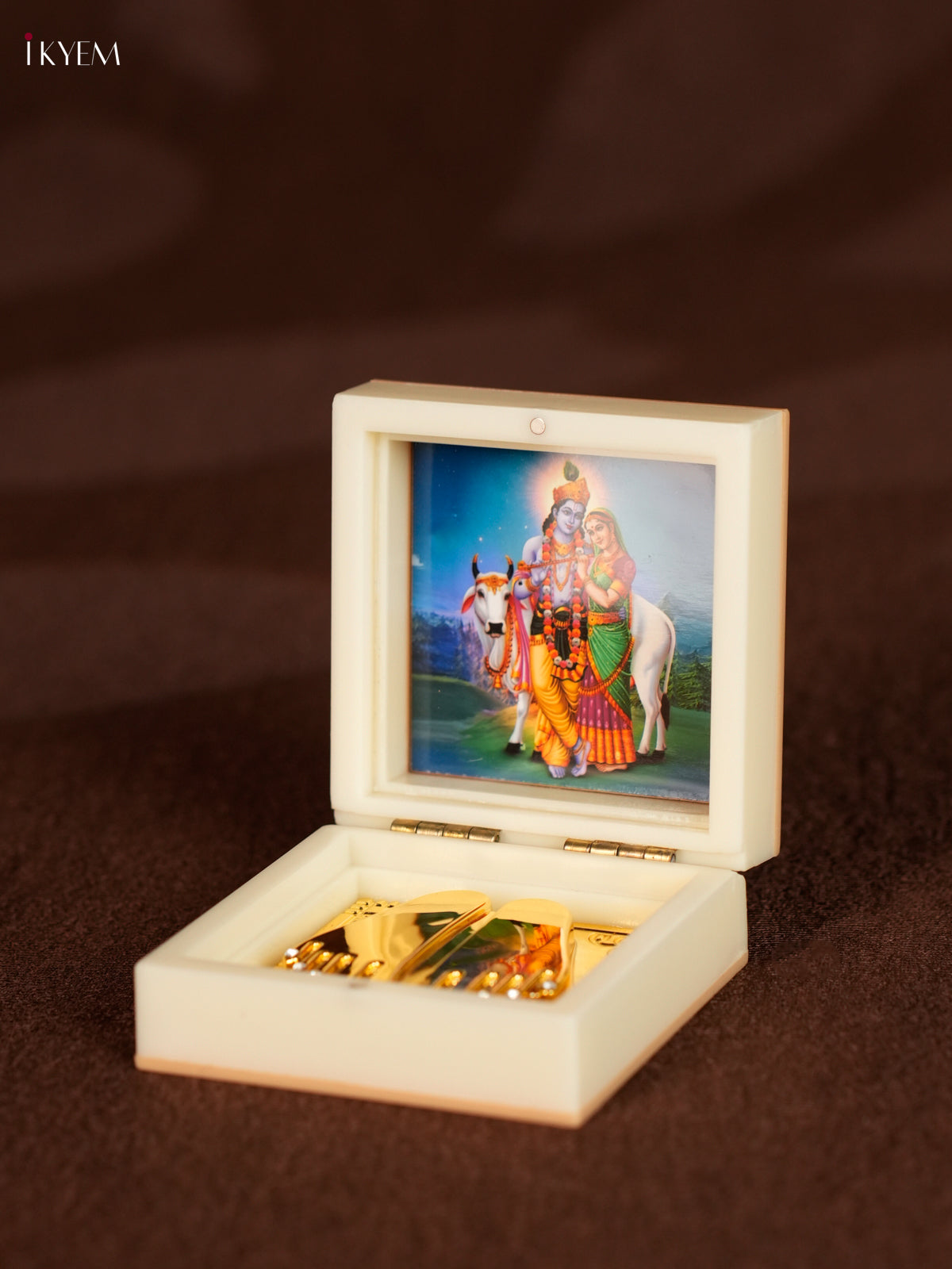 Whether you're hosting a pooja, wedding, baby shower or any festive gathering, Ikyem's godly return gifts are sure to delight your guests and leave a lasting impression.From Kolam stencils that bring charm to doorsteps, to fridge magnets adorned with divine deities, each piece in the DIVINE Collection is designed to add meaning and grace. We’ve also included essentials like Manais (wooden chowkis), small idols, decorative diyas and more. Perfect for gifting and equally perfect for keeping! These aren’t just gifts, they’re blessings wrapped in tradition.