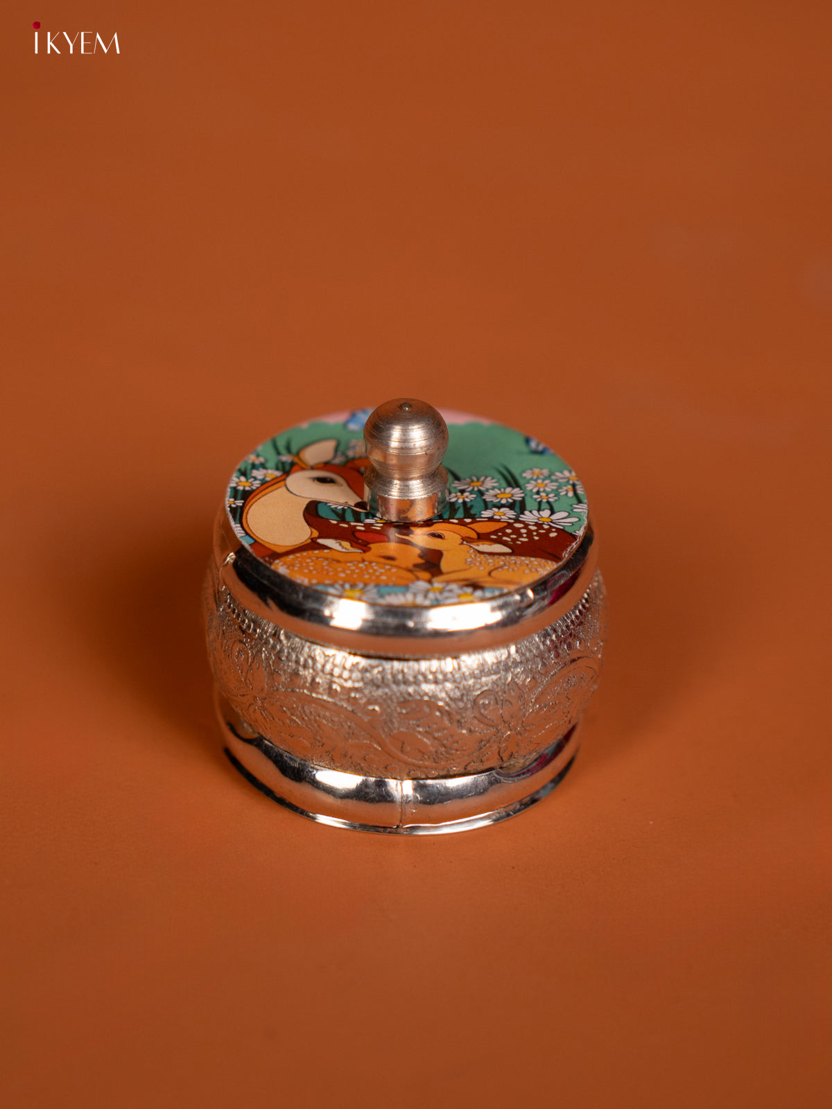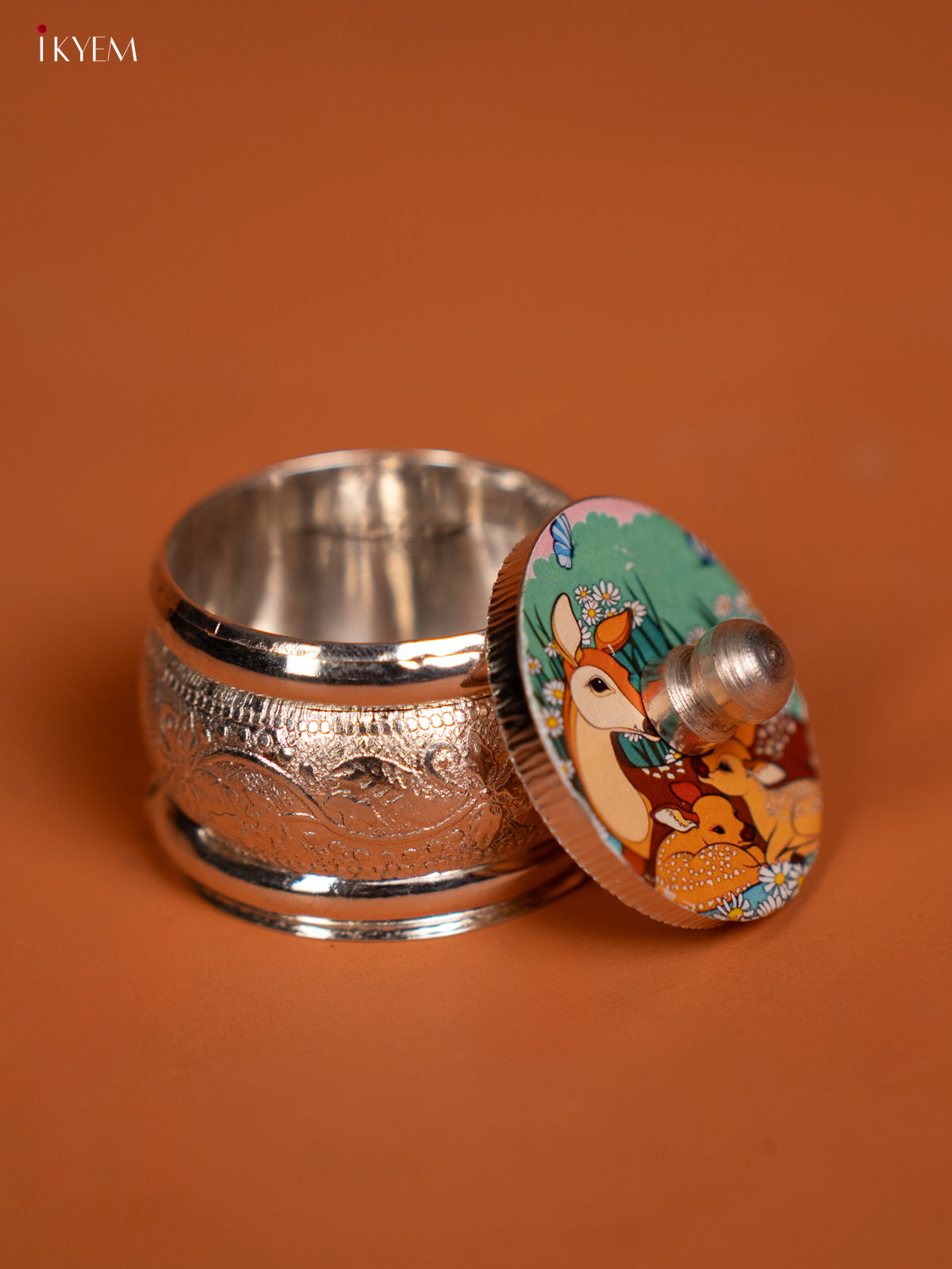Deer Design Printed German Silver Kumkum Holder - KF10235