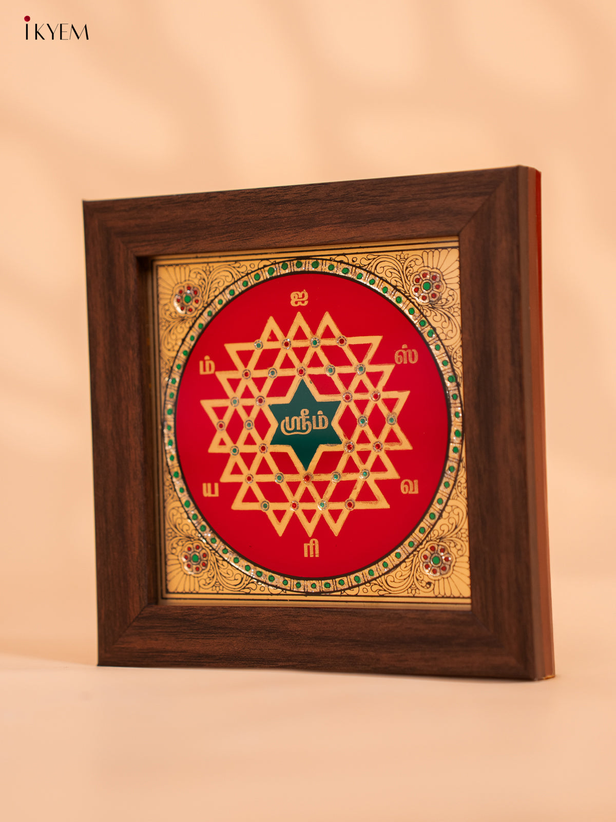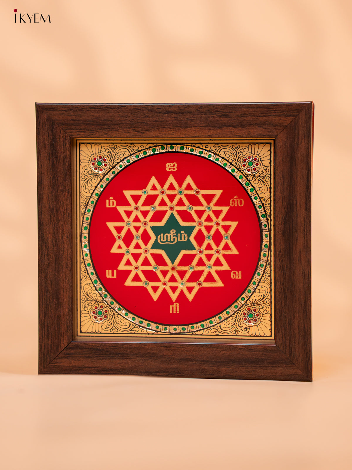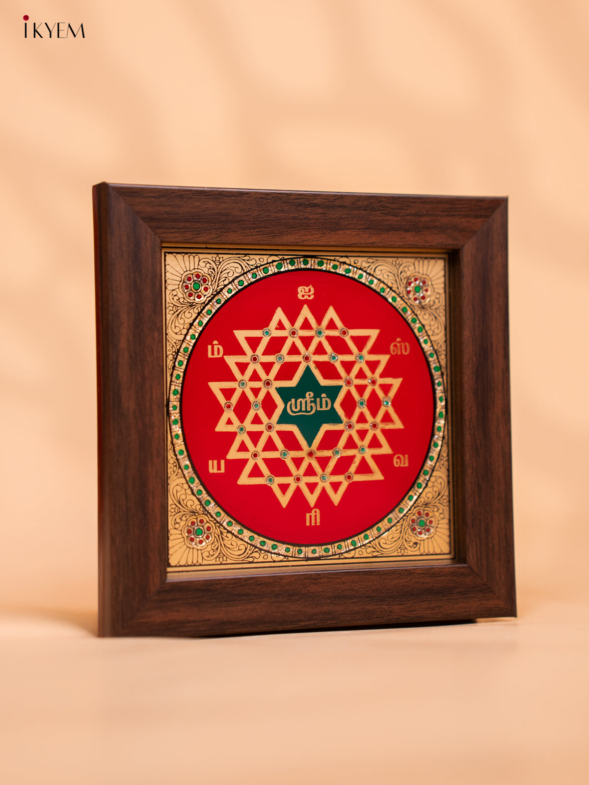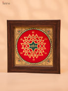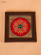 Reverse Glass Painted Manai (6x6) - Aishwarya Kolam - Red - KC06124