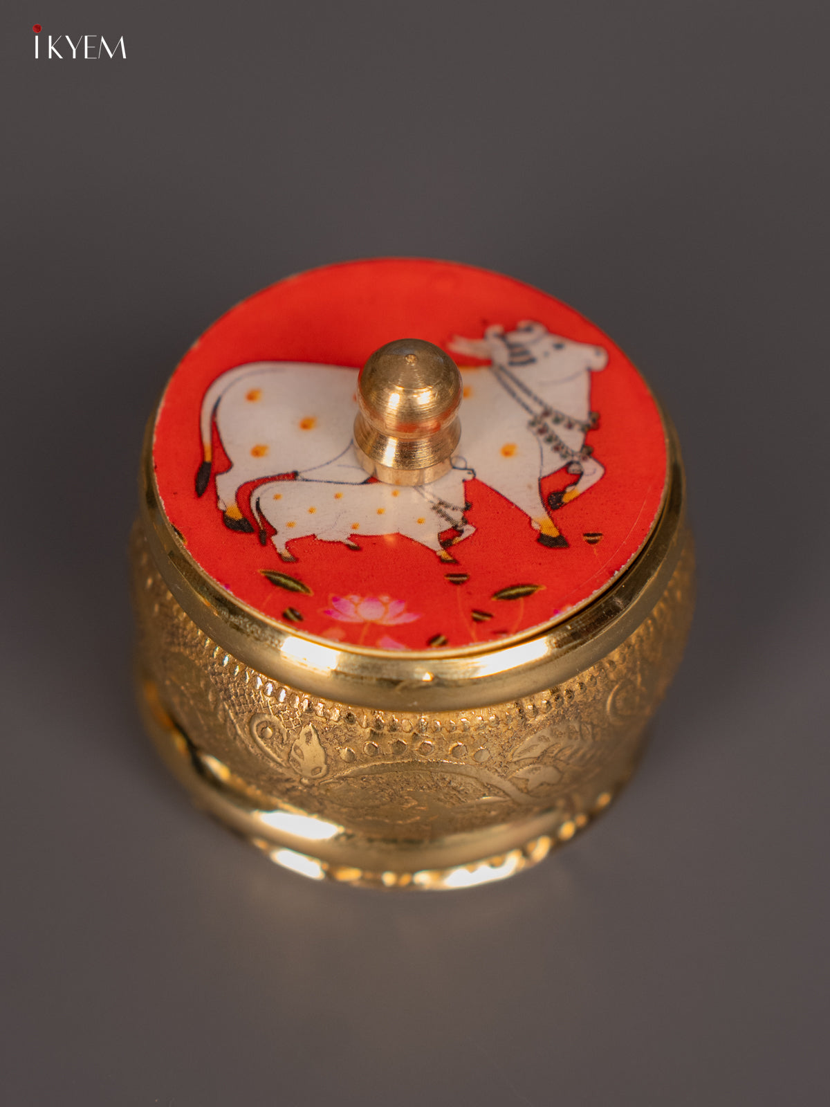 Brass Cow & Calf Digital Printed Kumkum Holder - Red - (1.5×1.5) Inch - KH12111