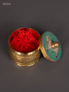 Add a touch of tradition to your pooja space with this Brass Cow Digital Printed Kumkum Holder in serene teal — a compact and elegant accessory sized just right for daily rituals. With dimensions of 1.2″ (H) × 1.5″ (B) × 1.5″ (L) and weighing only 20 g, it neatly fits into any altar or pooja shelf.