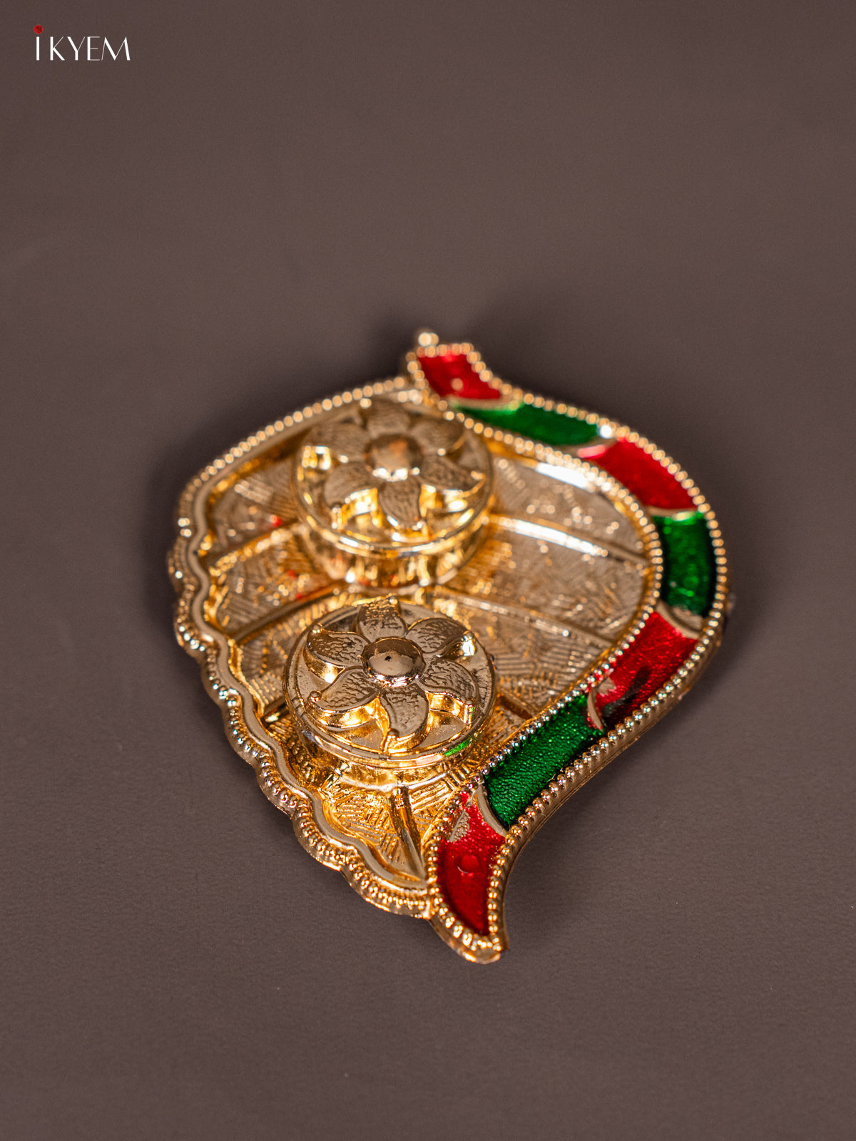 Leaf Shaped Plate With Haldi & Kumkum Holder