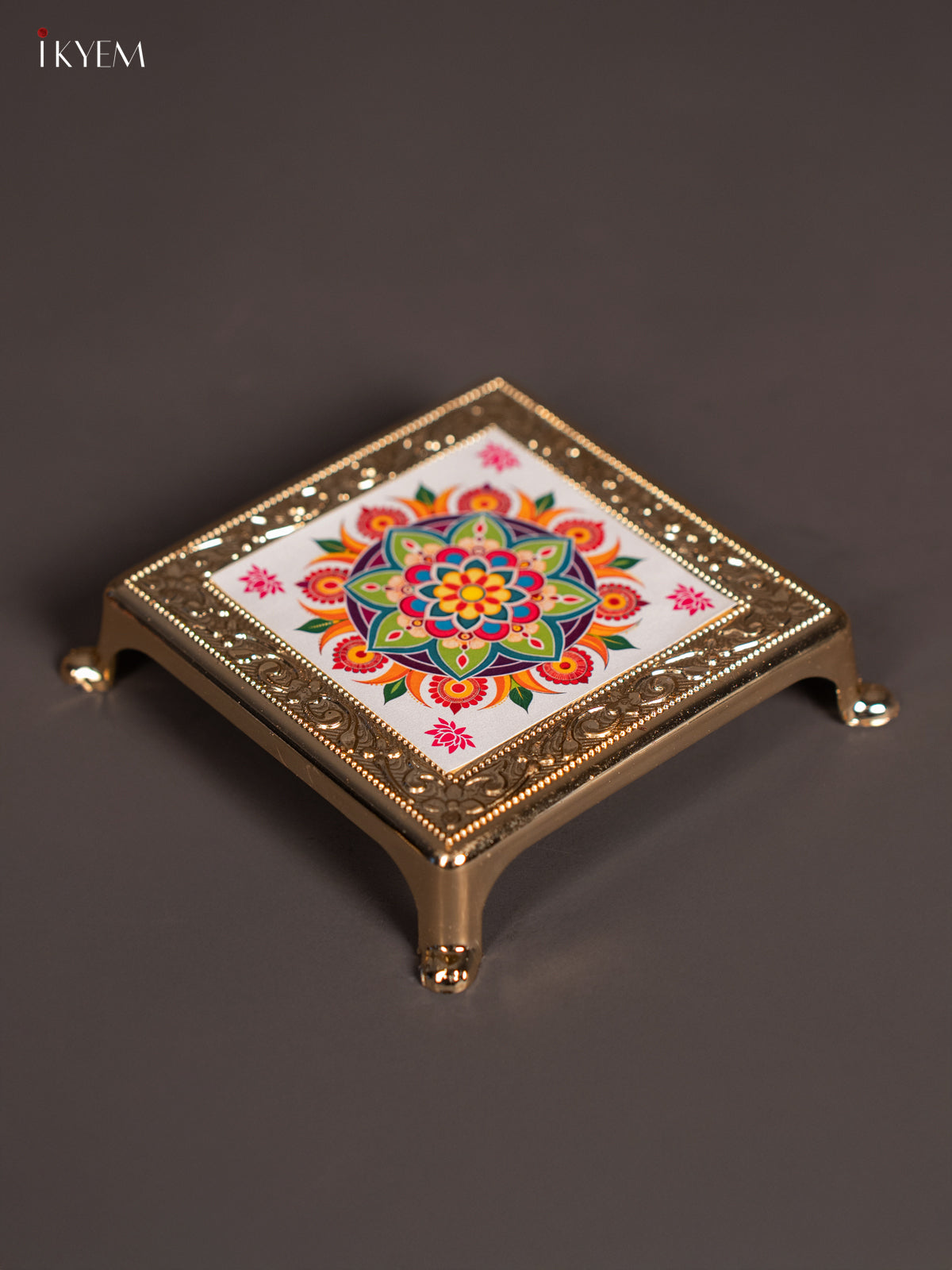 - White Plastic Manai With Rangoli Design Elevate your traditional serving with this exquisite white fiber plastic manai, meticulously crafted with intricate rangoli patterns.