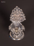 - This German Silver Lakshmi Deepam is a beautifully crafted piece that blends spiritual significance with decorative appeal.