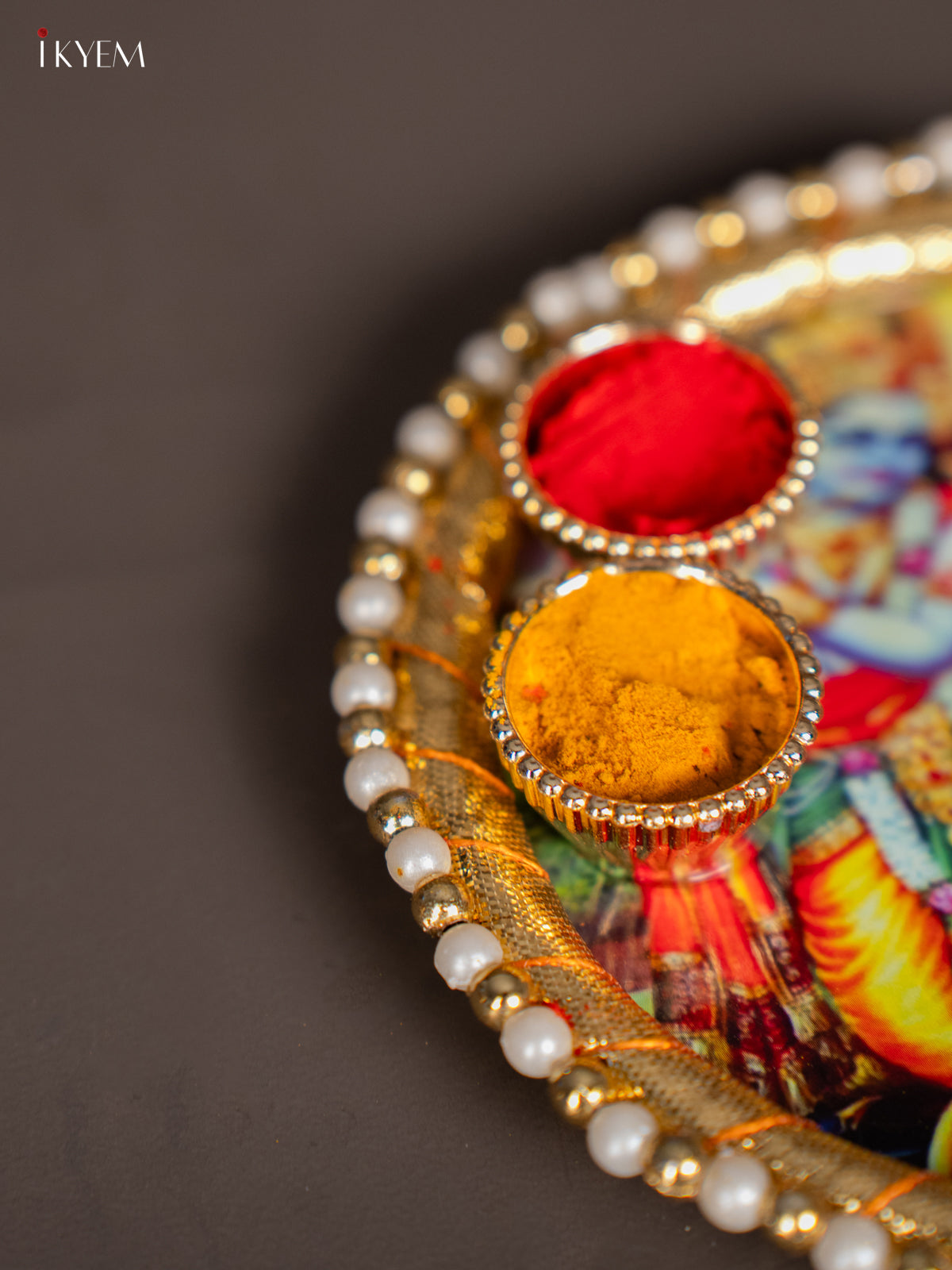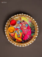 Radha Krishna Printed Plate with Haldi-Kumkum Holder – 4.5 Inch - KK17114