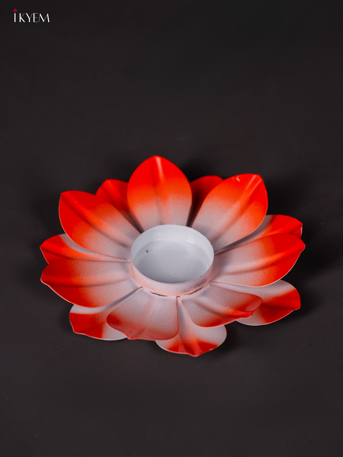 Elegant Orange Hand-Painted Lotus T-Light Candle Holder - KI01204