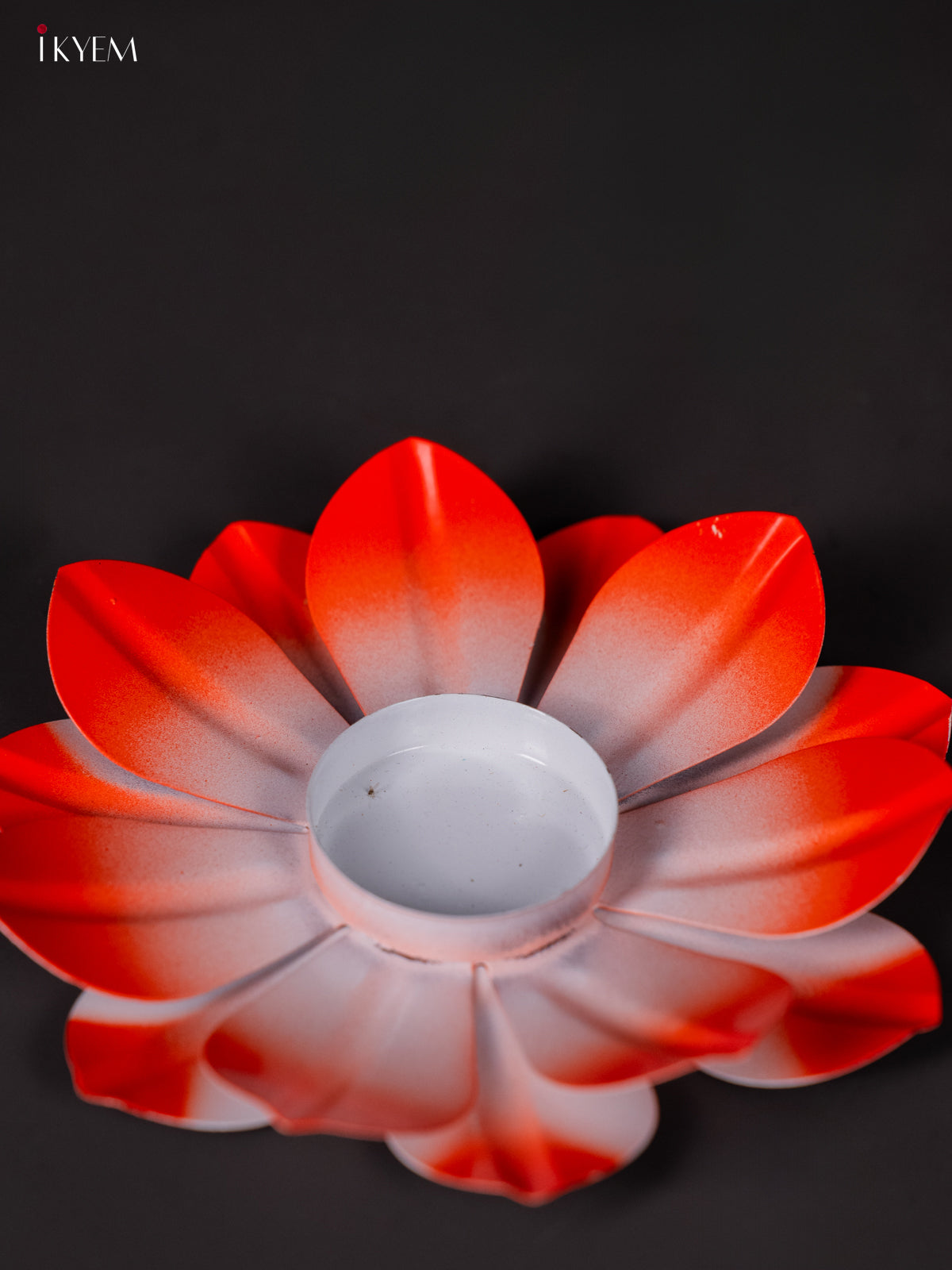 - This orange Hand Painted Lotus t-light holder is expertly crafted to enhance your pooja rituals with elegance and tradition.