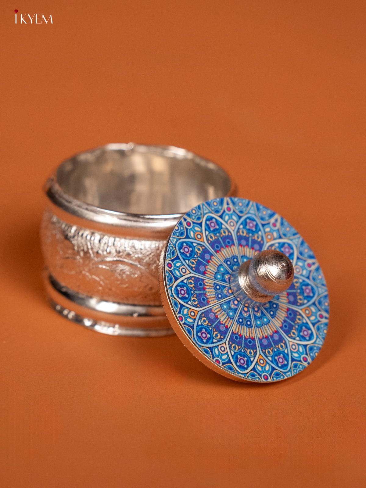 Ethnic Rangoli Designed Kumkum Holder in German Silver - KF10239