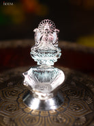 - Enhance your spiritual practices with this intricately designed diya, electroplated in silver for a premium finish.