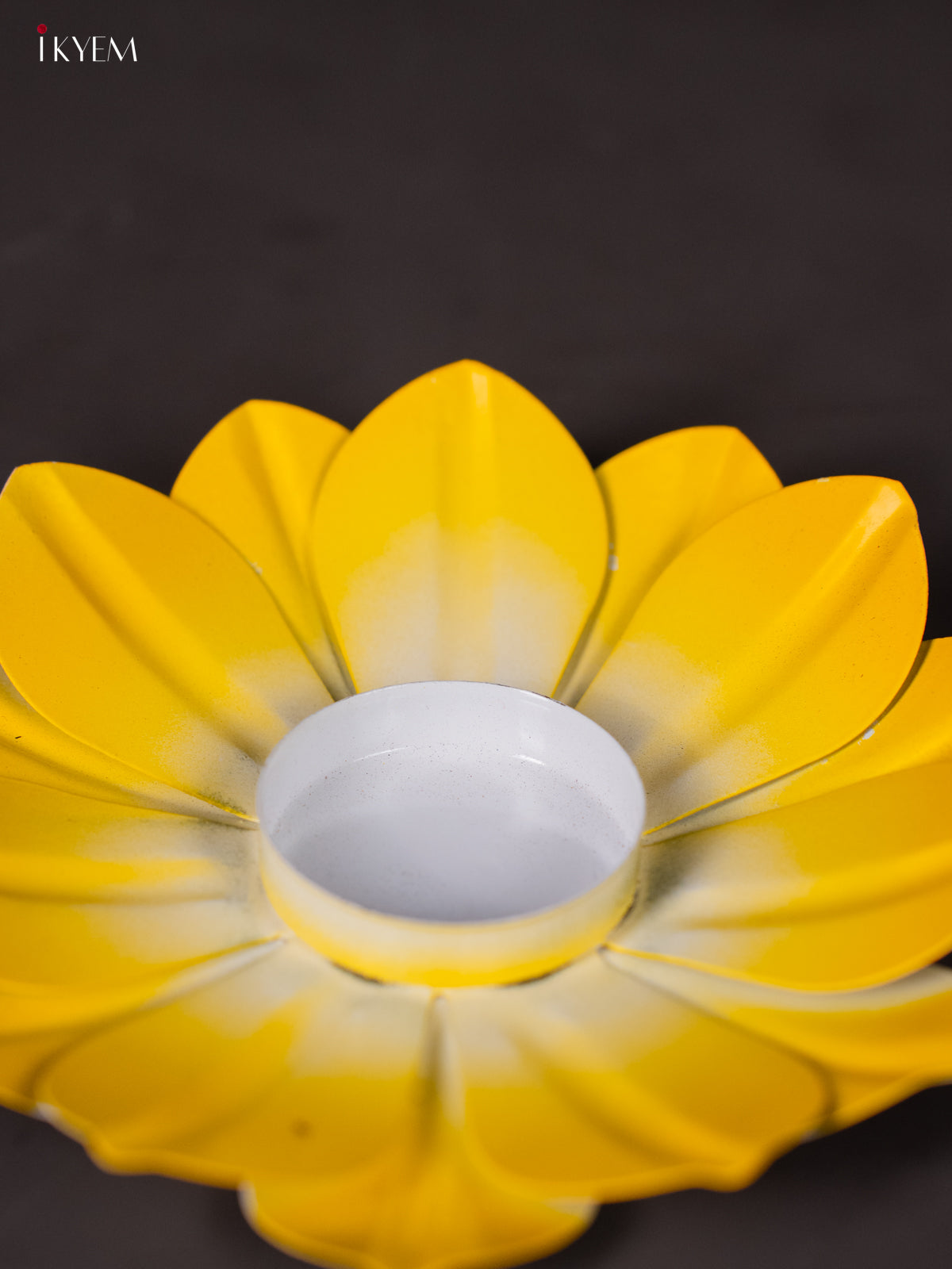 Vibrant Yellow Hand-Painted Lotus T-Light Candle Holder - KI01202