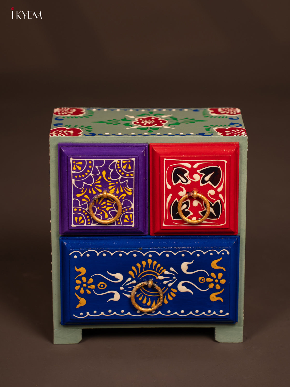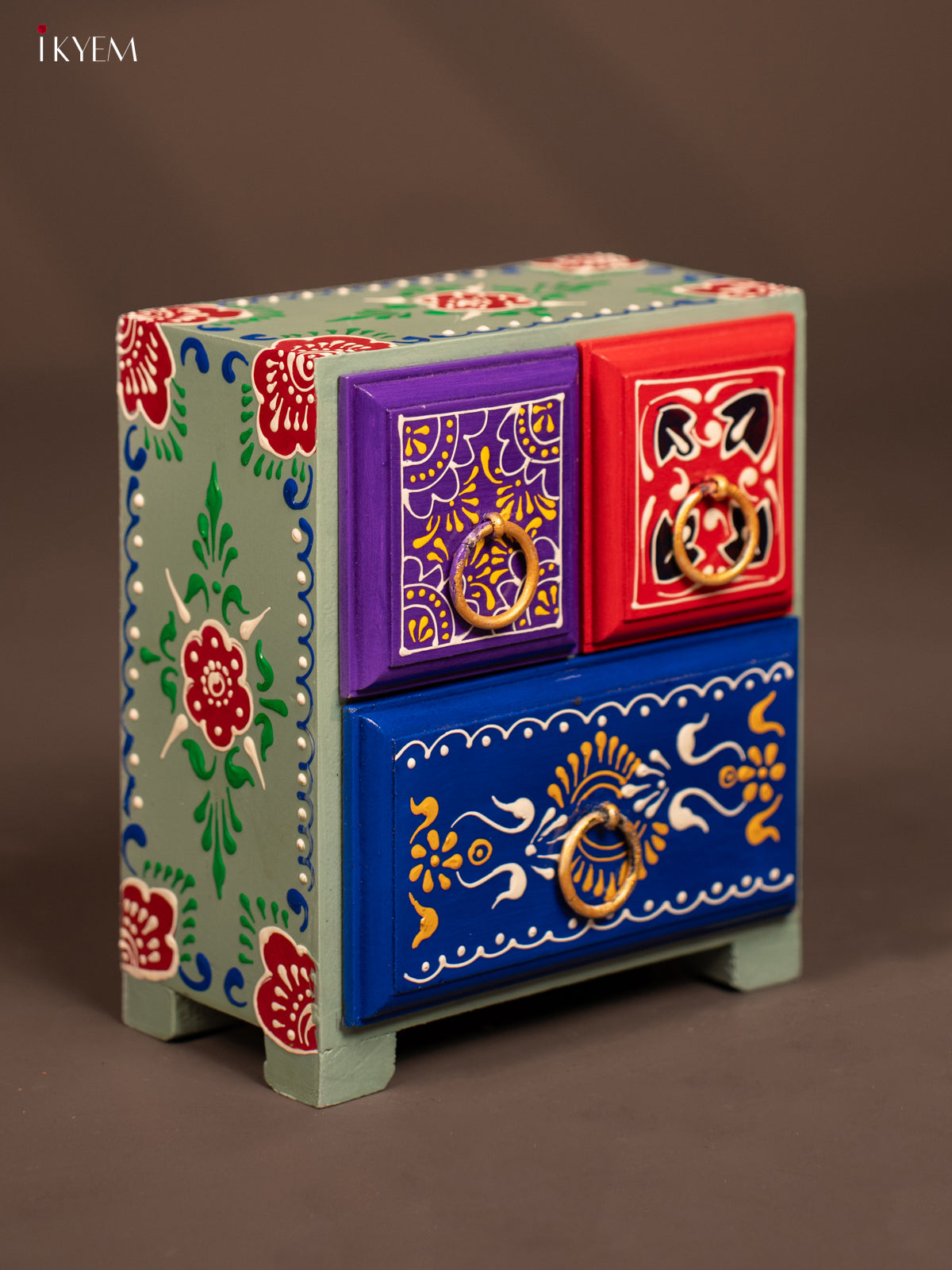 Wooden Hand Painted with 3 Drawers - Green - KF07111