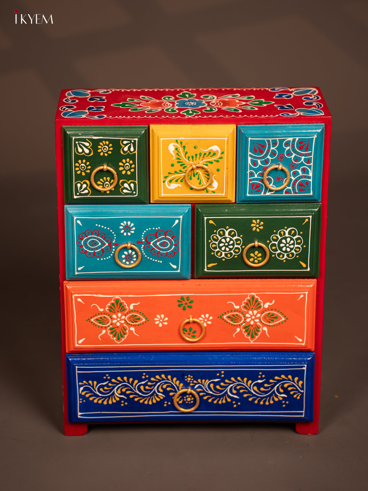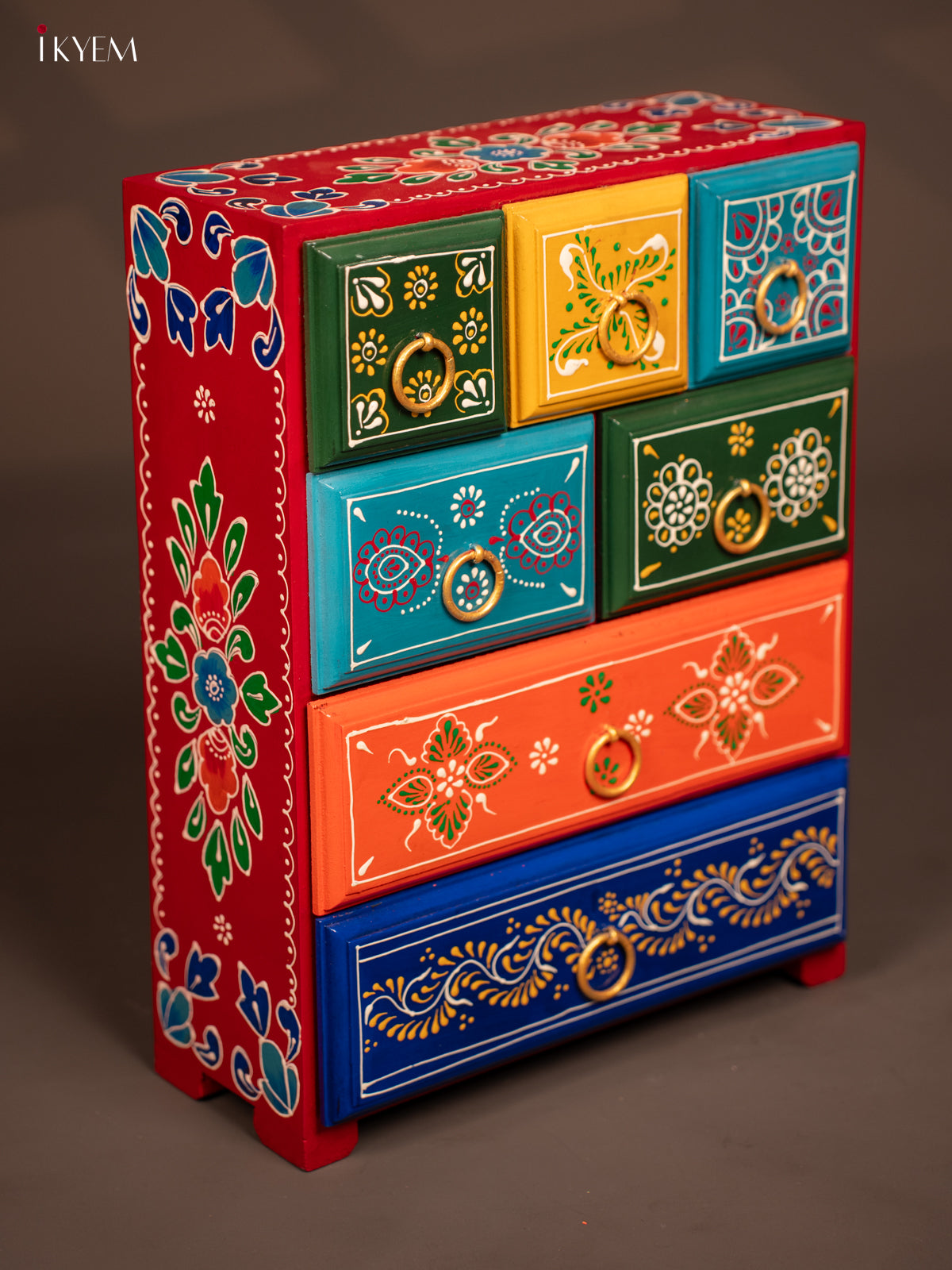 Wooden Hand Painted with 7 Drawers - Red - KF07116