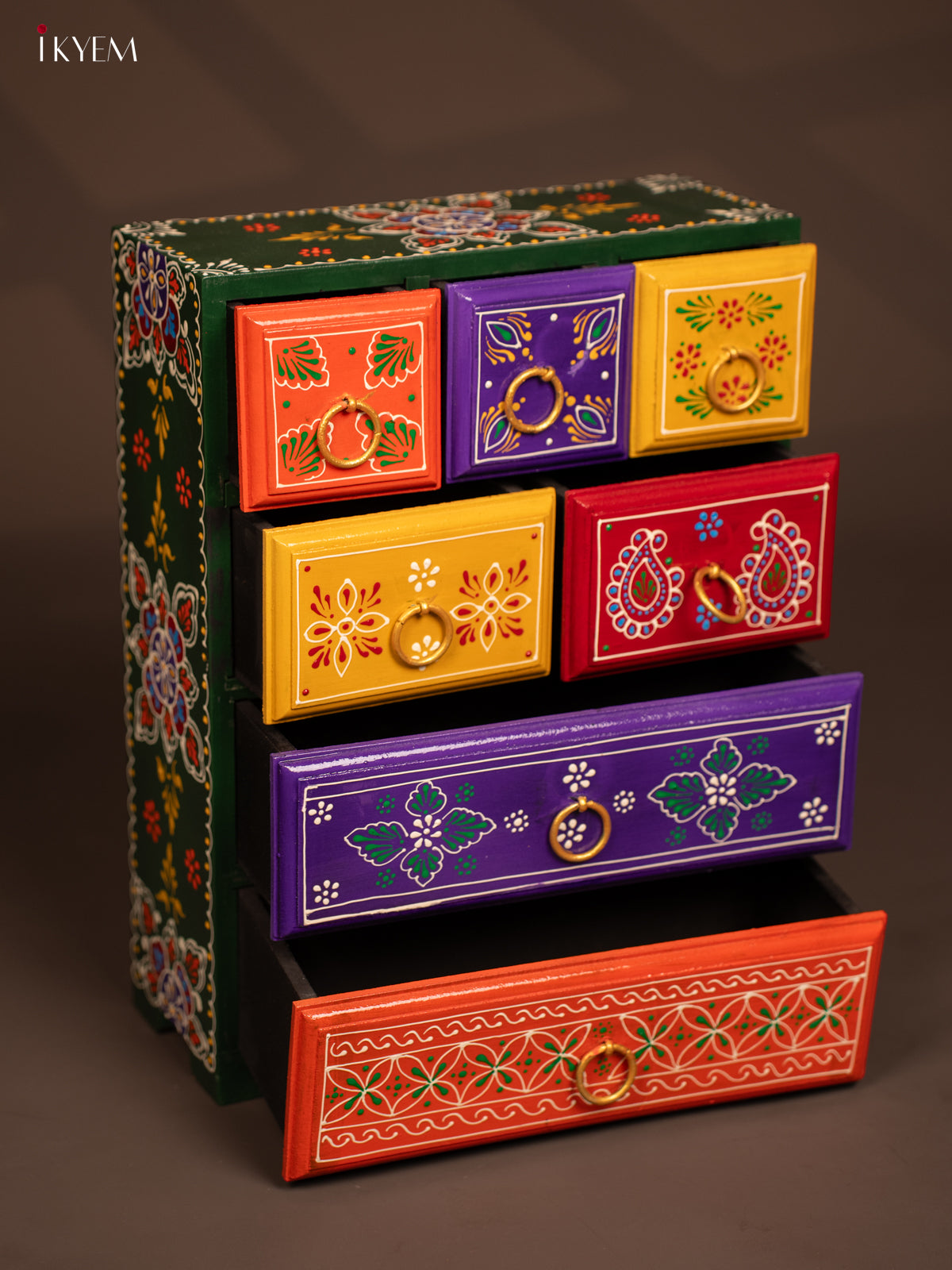 Wooden Hand Painted with 7 Drawers - Dark green - KF07117