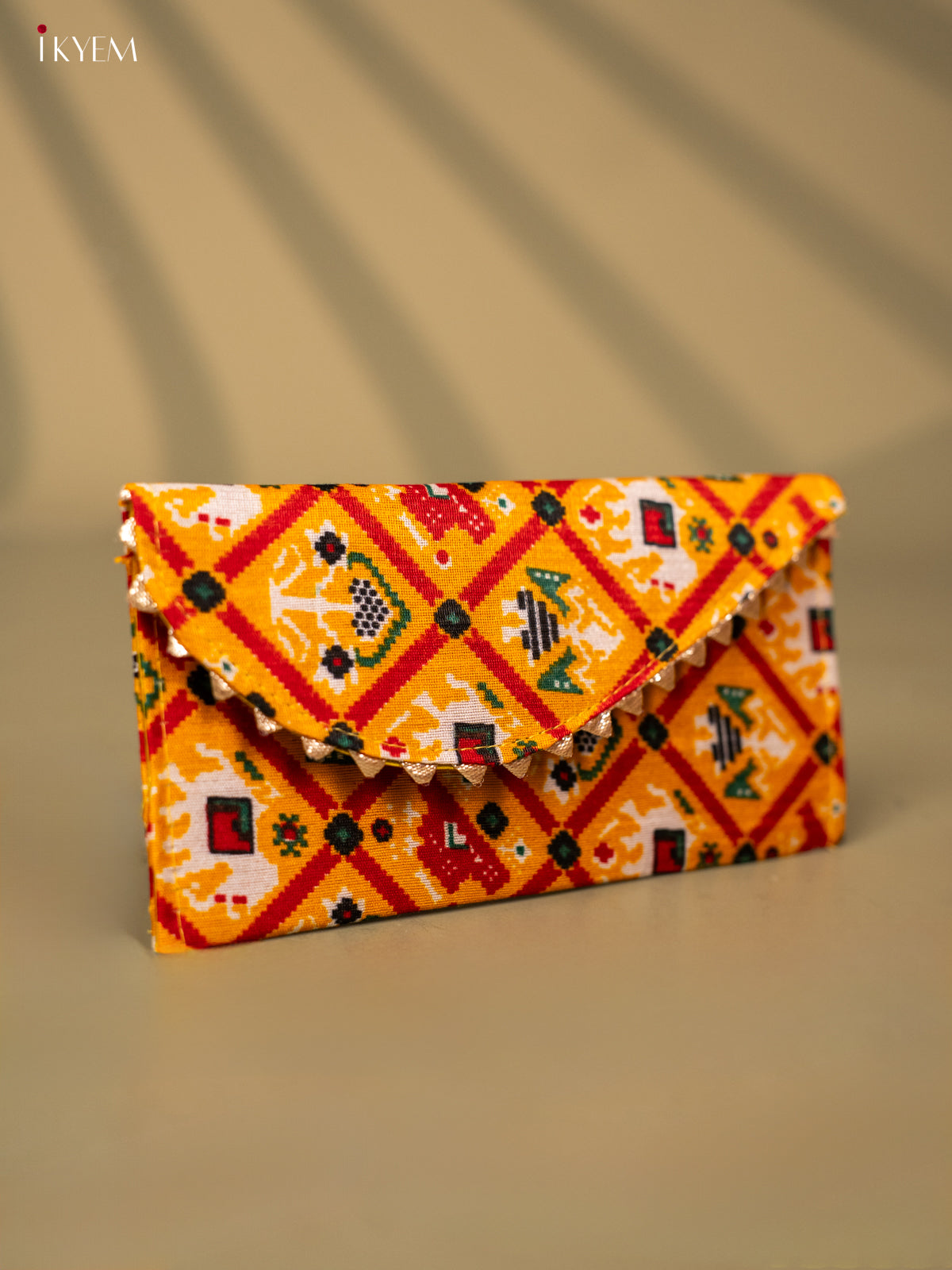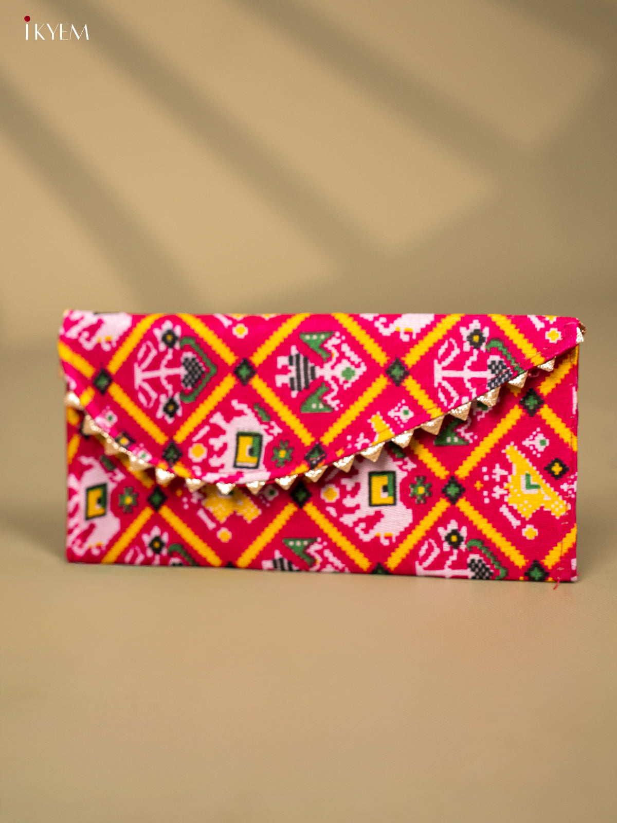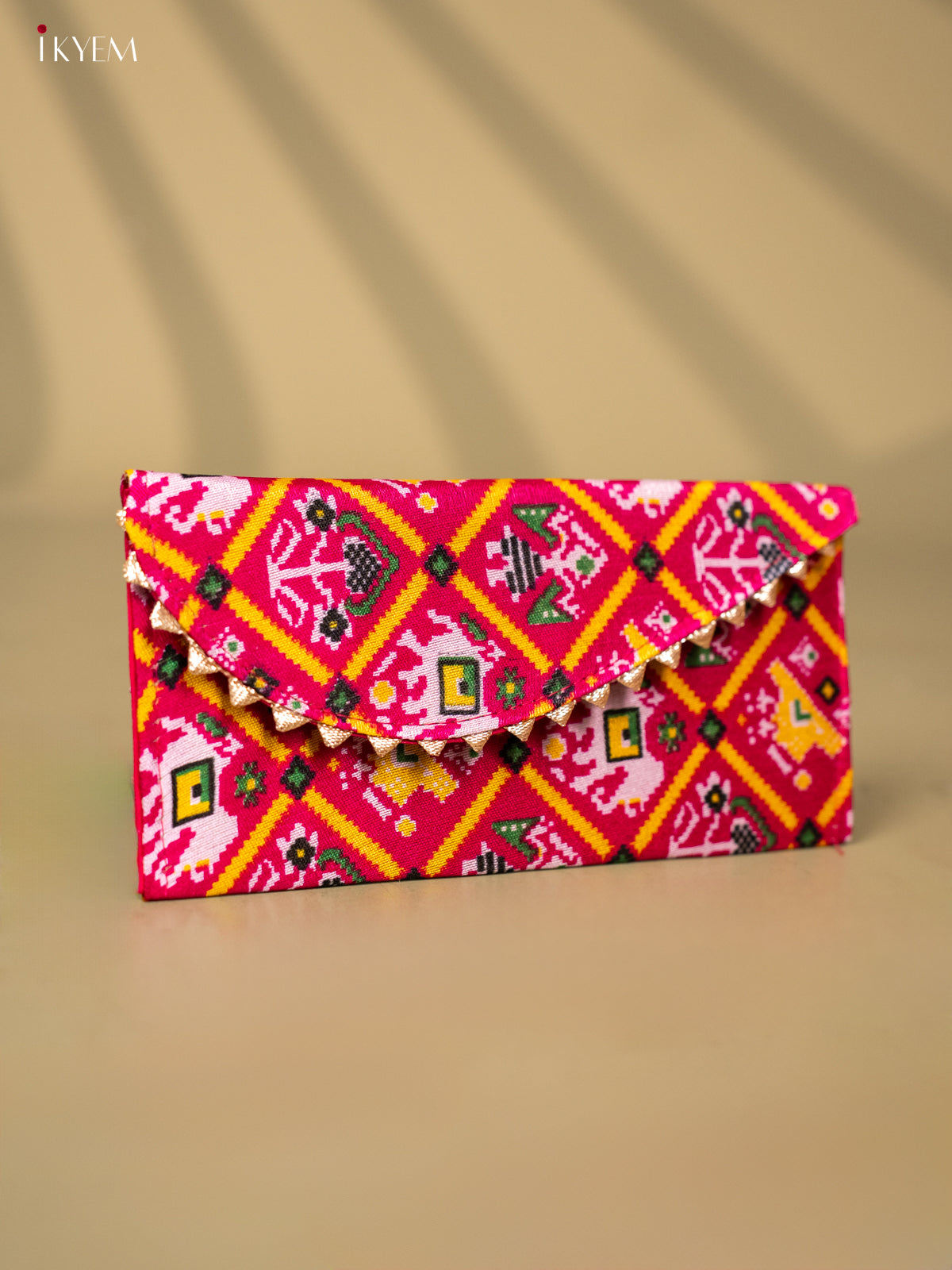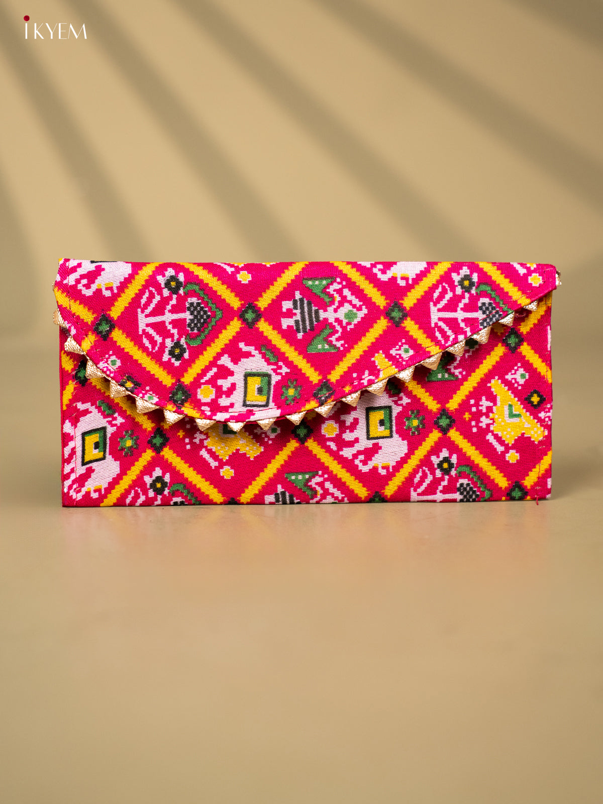 - This Embroidered patola Envelope Clutch is perfect for auspicious occasions like Navaratri and makes for memorable return gifts.