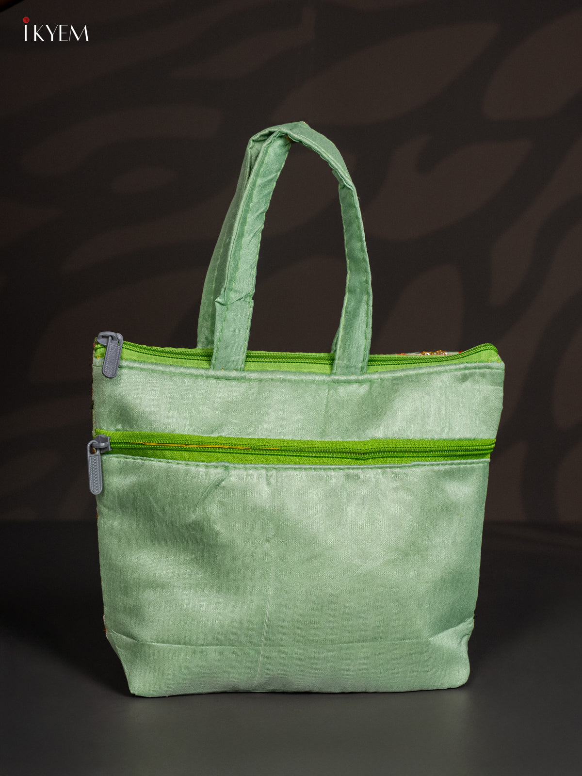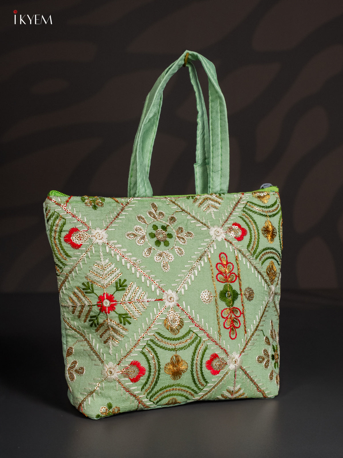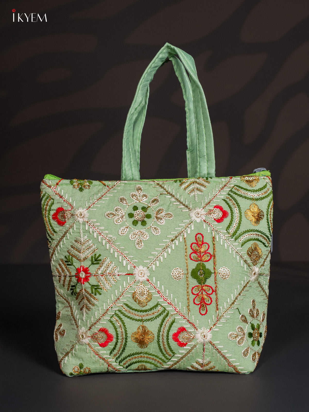 Green Designer Floral Embroidered Handbag - 8.5 Inch - KJ04115
