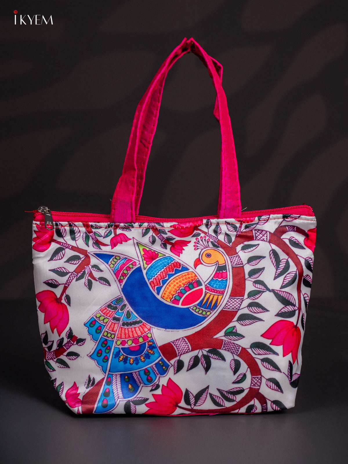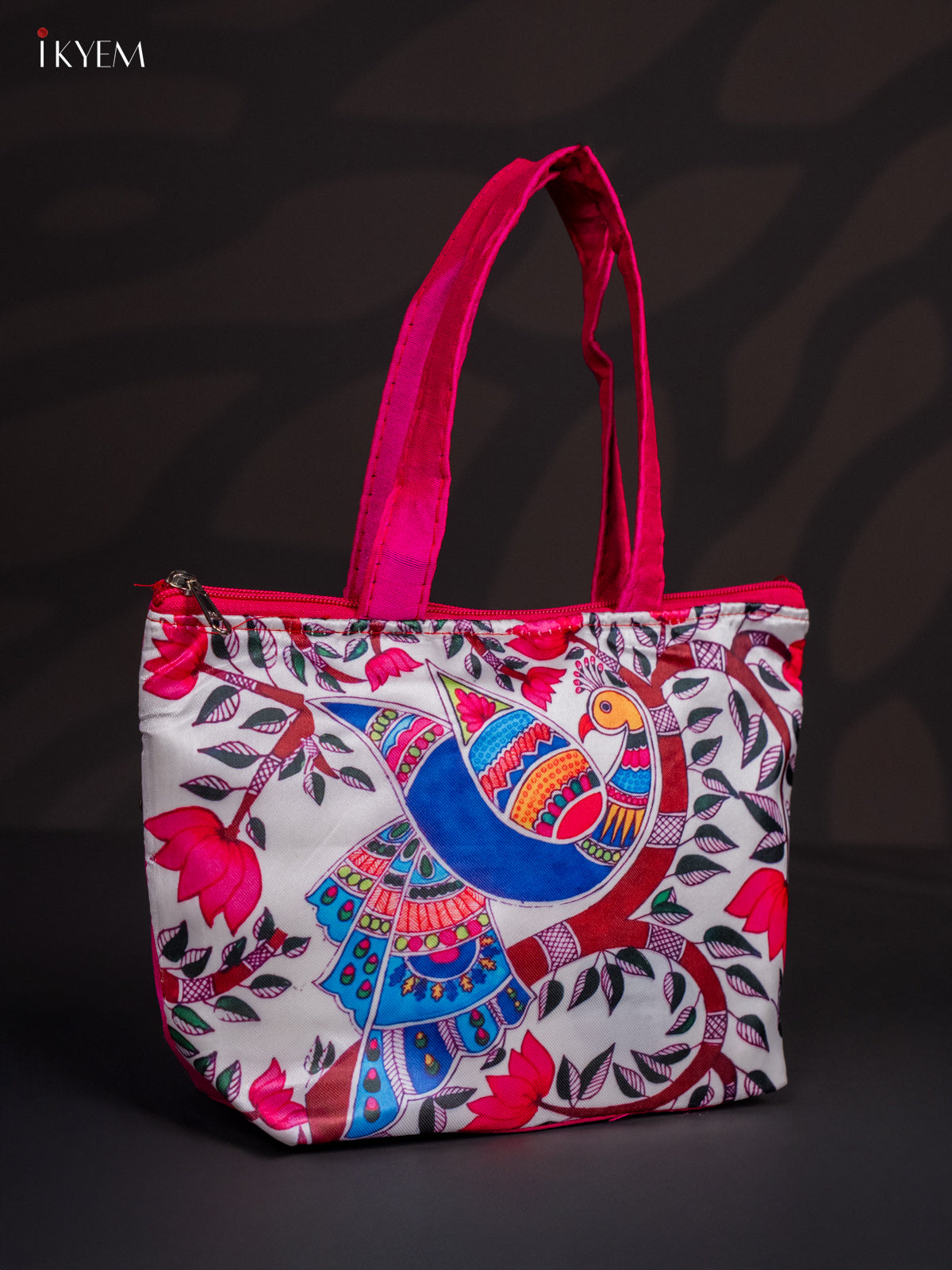 Meet the stylish Peacock Designer Handbag — a compact yet roomy accessory measuring 7 inches (height) × 10 inches (breadth) × 3 inches (depth) and weighing around 80 g. Its vibrant pink exterior and elegant design make it perfect for casual outings, festive gifting, or everyday use.