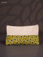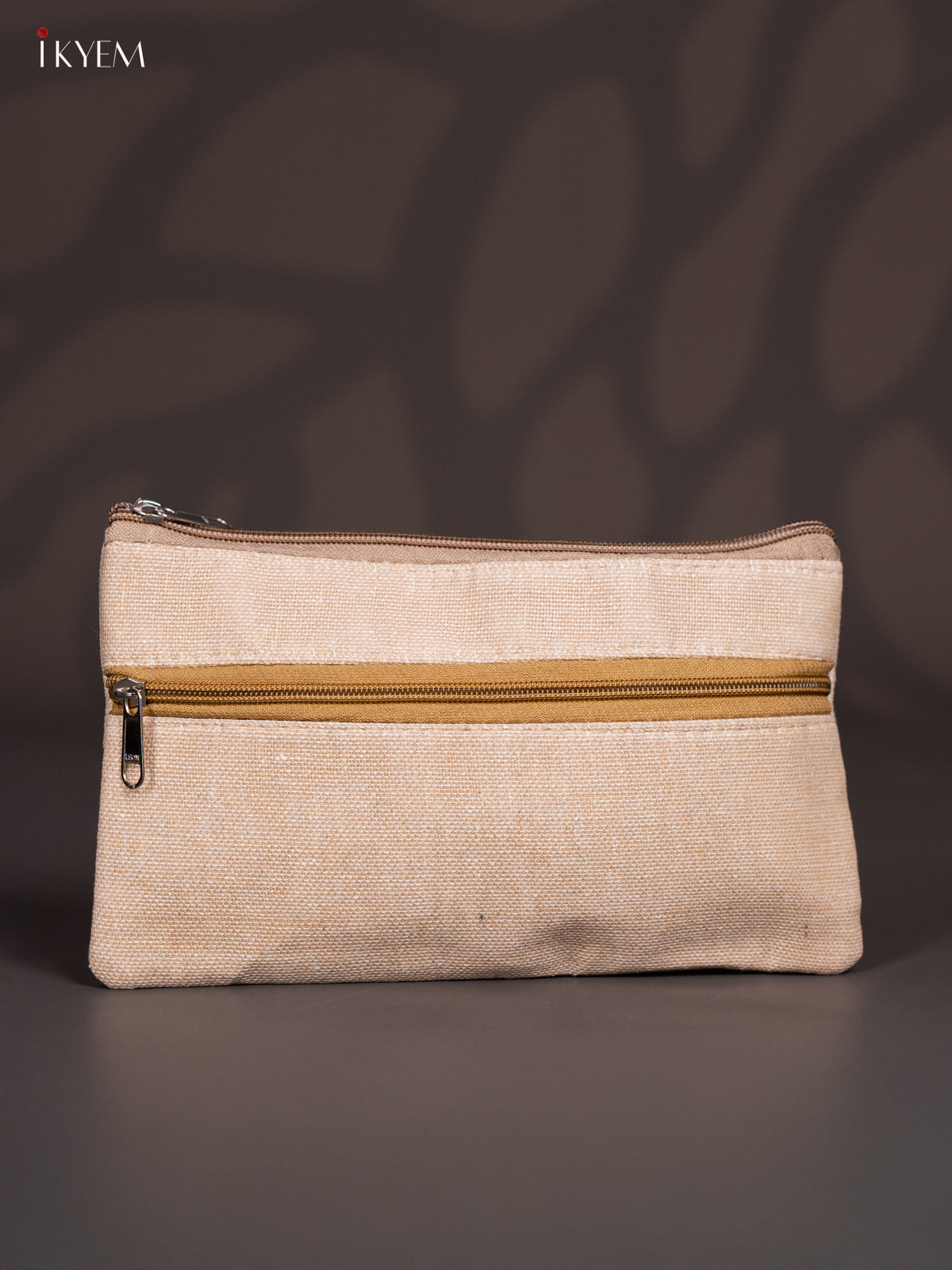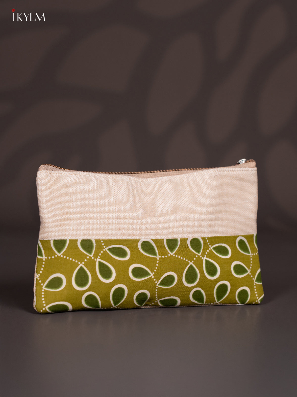 - This jute purse features a unique half-and-half colorful fabric design with beautiful and elegant prints.