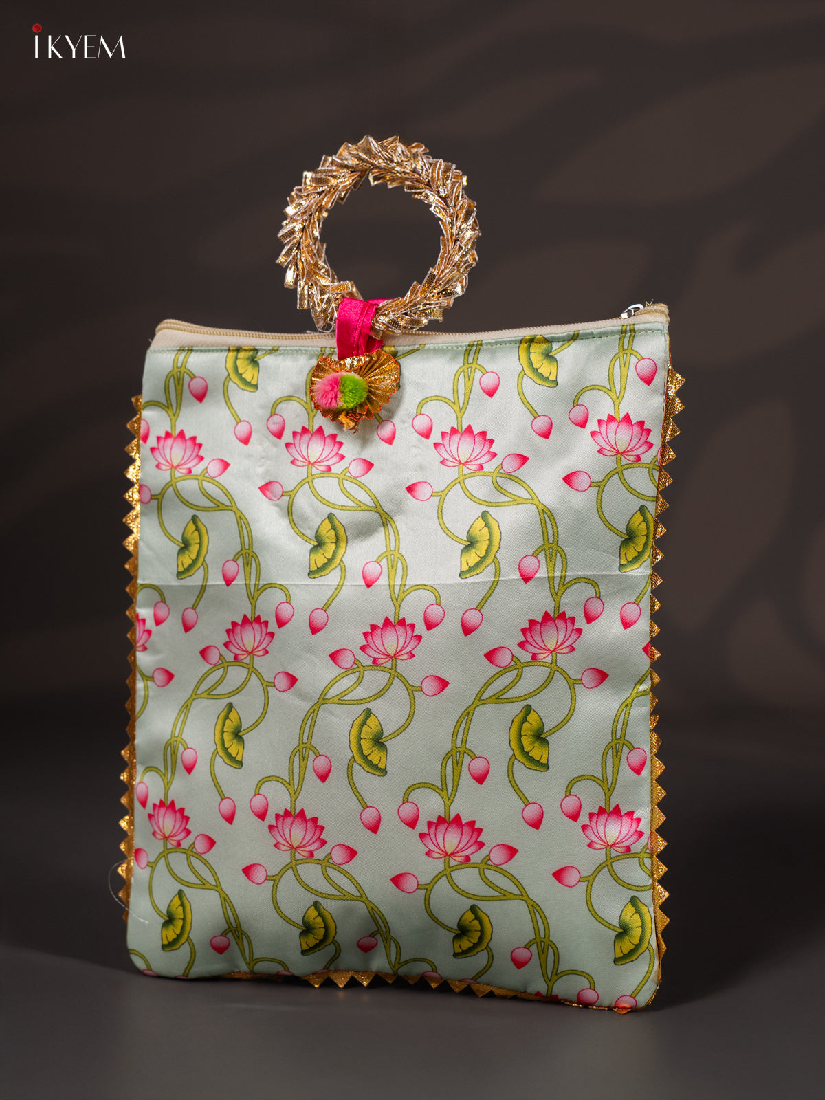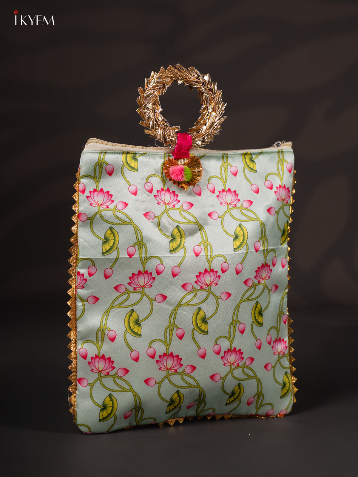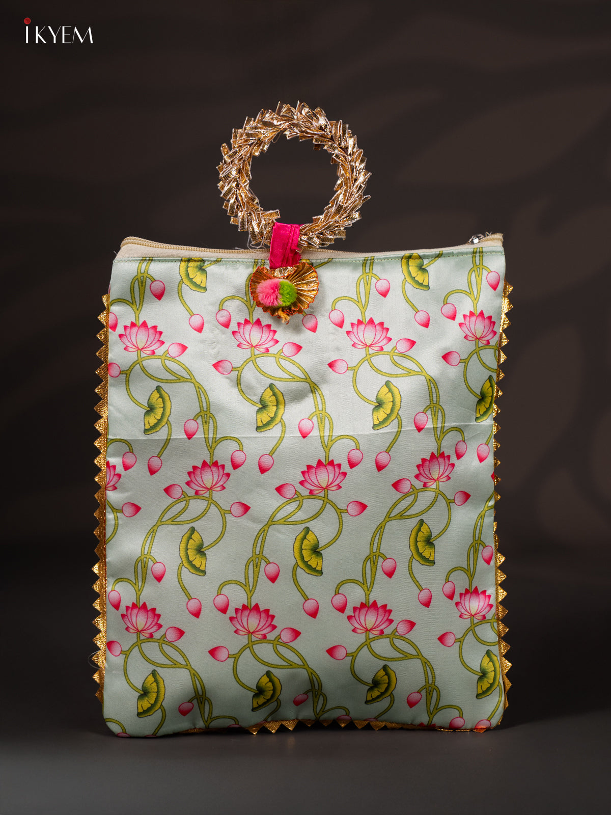 Lotus Printed Bag with Bangle Handle - Green - 11 Inch - KJ11123