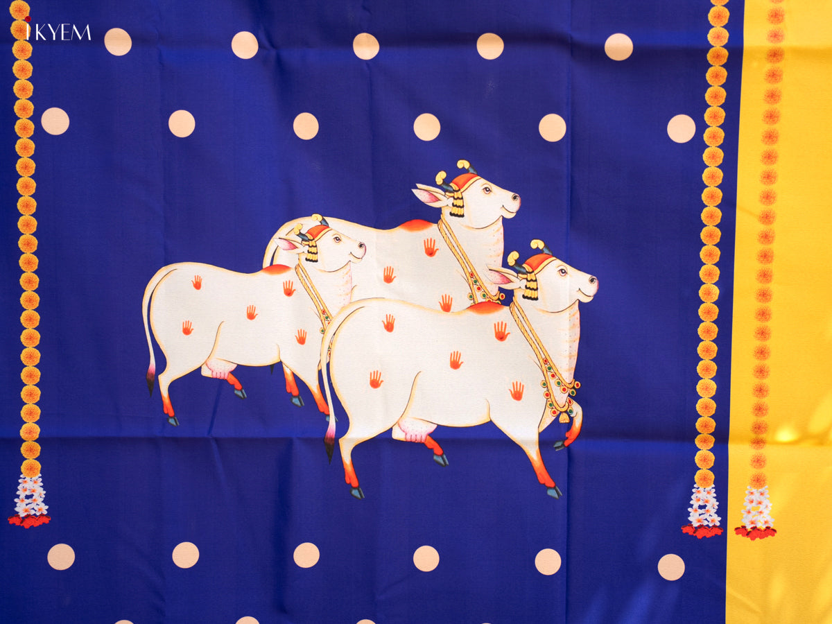 Pichwai Backdrop - Cow & calf Blue/yellow - (5×8 feet) - KH06127