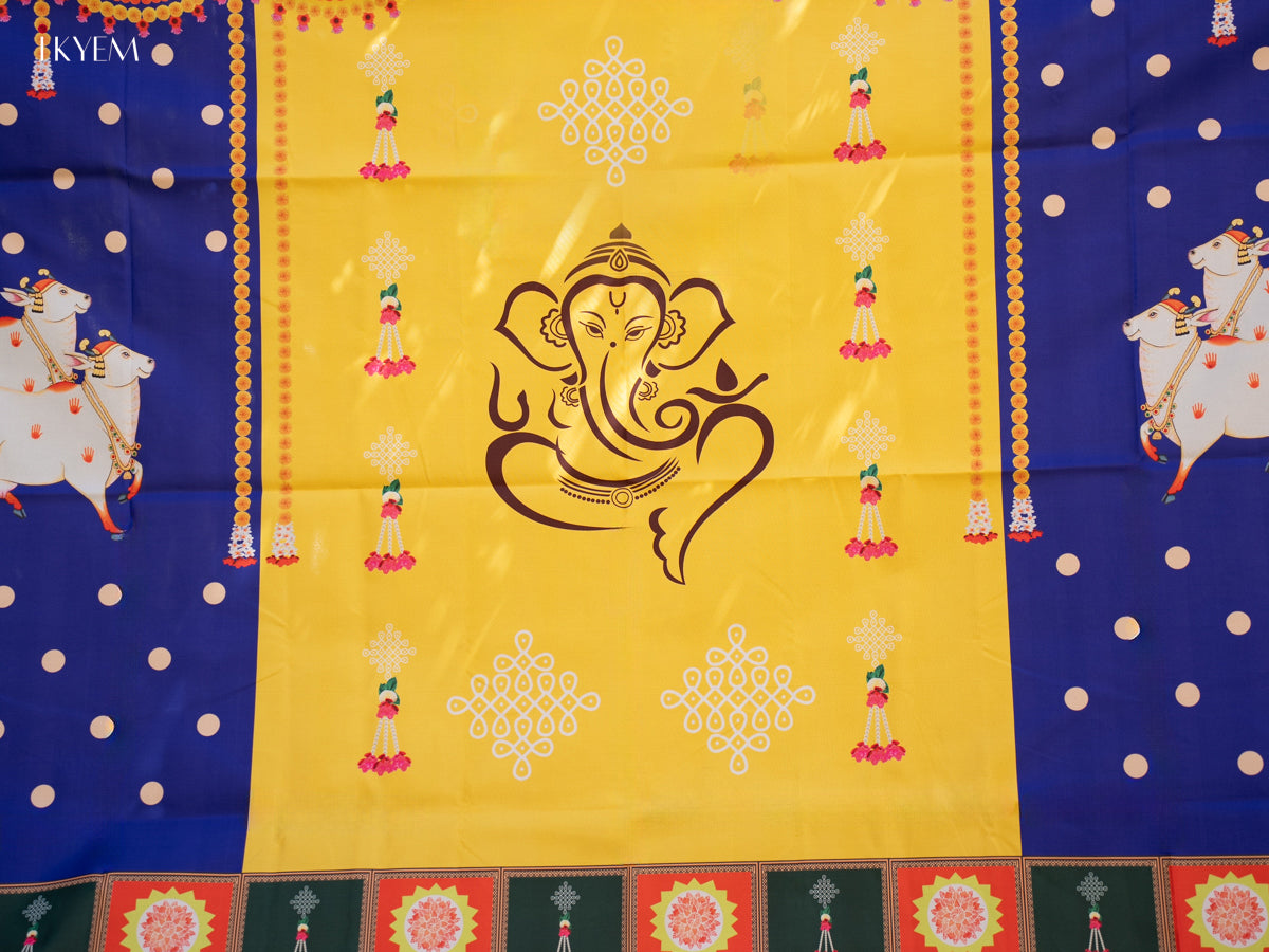 Pichwai Backdrop with Ganesha-yellow with blue - (5×8 feet)- KC11129