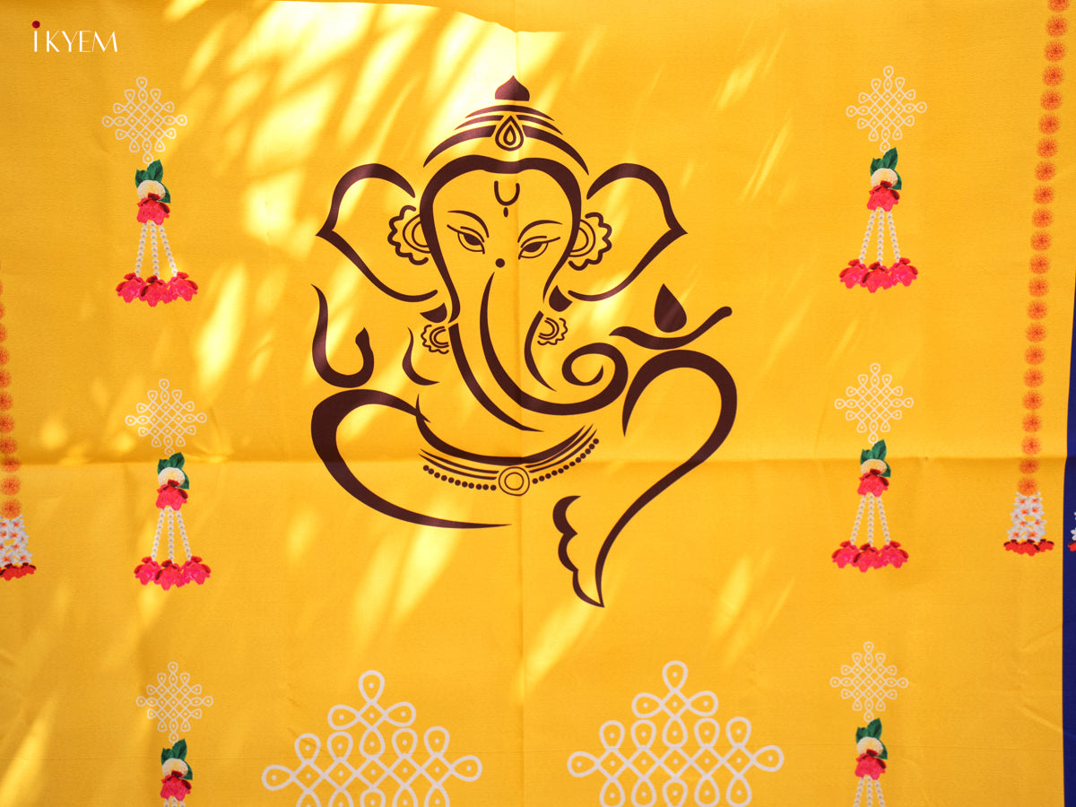 Pichwai Backdrop with Ganesha-yellow with blue - (5×8 feet)- KC11129