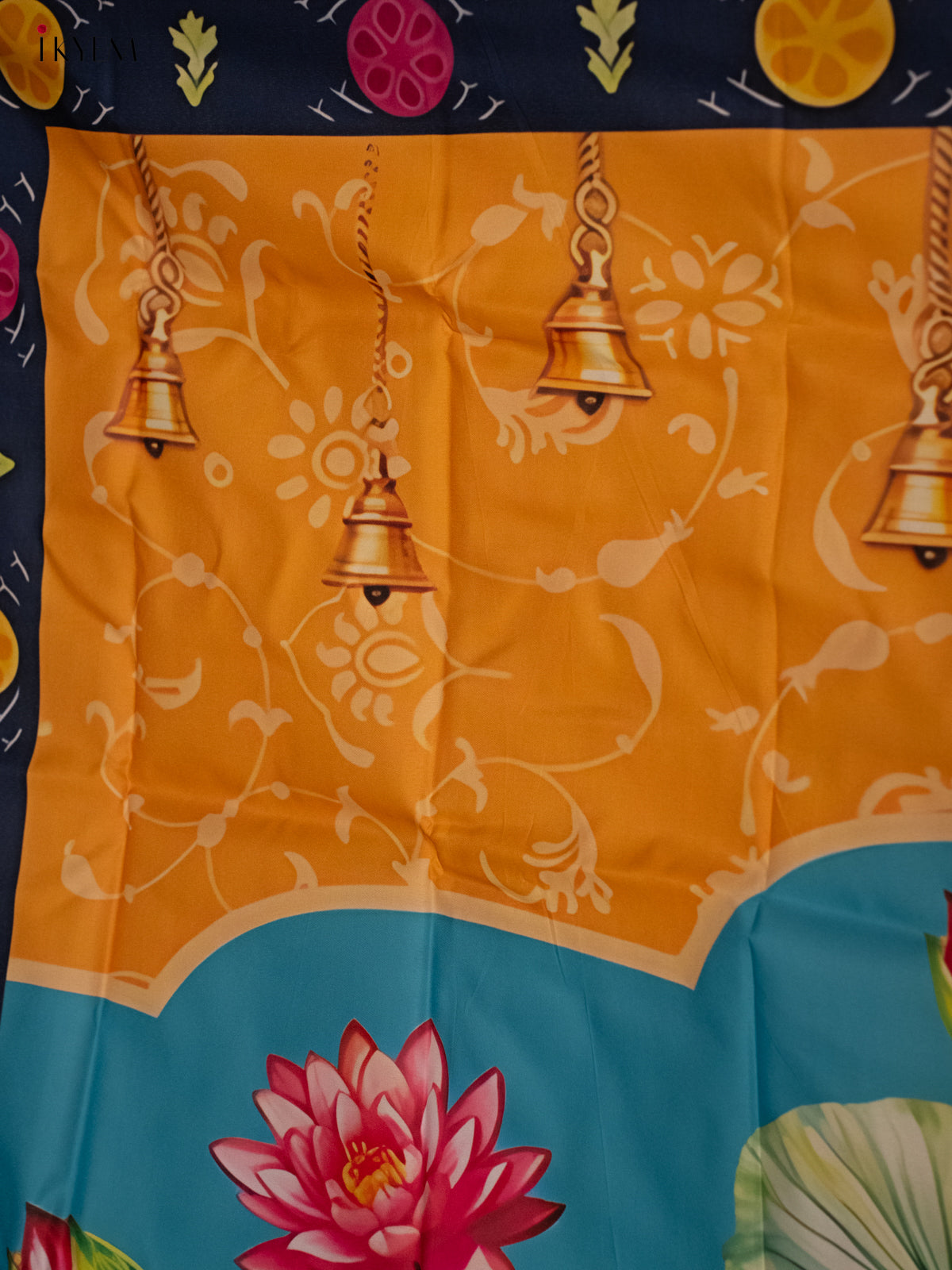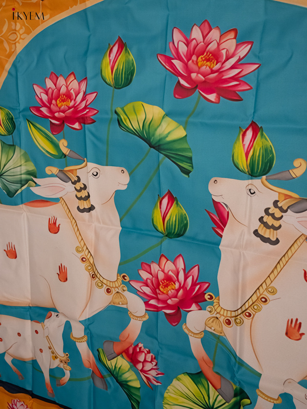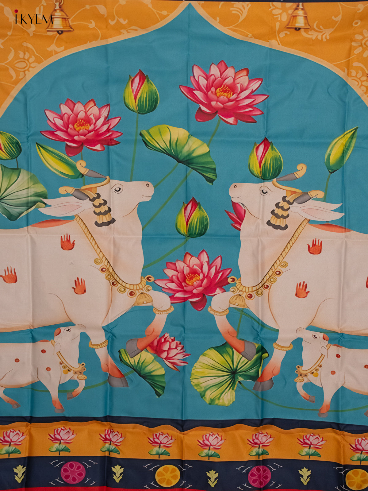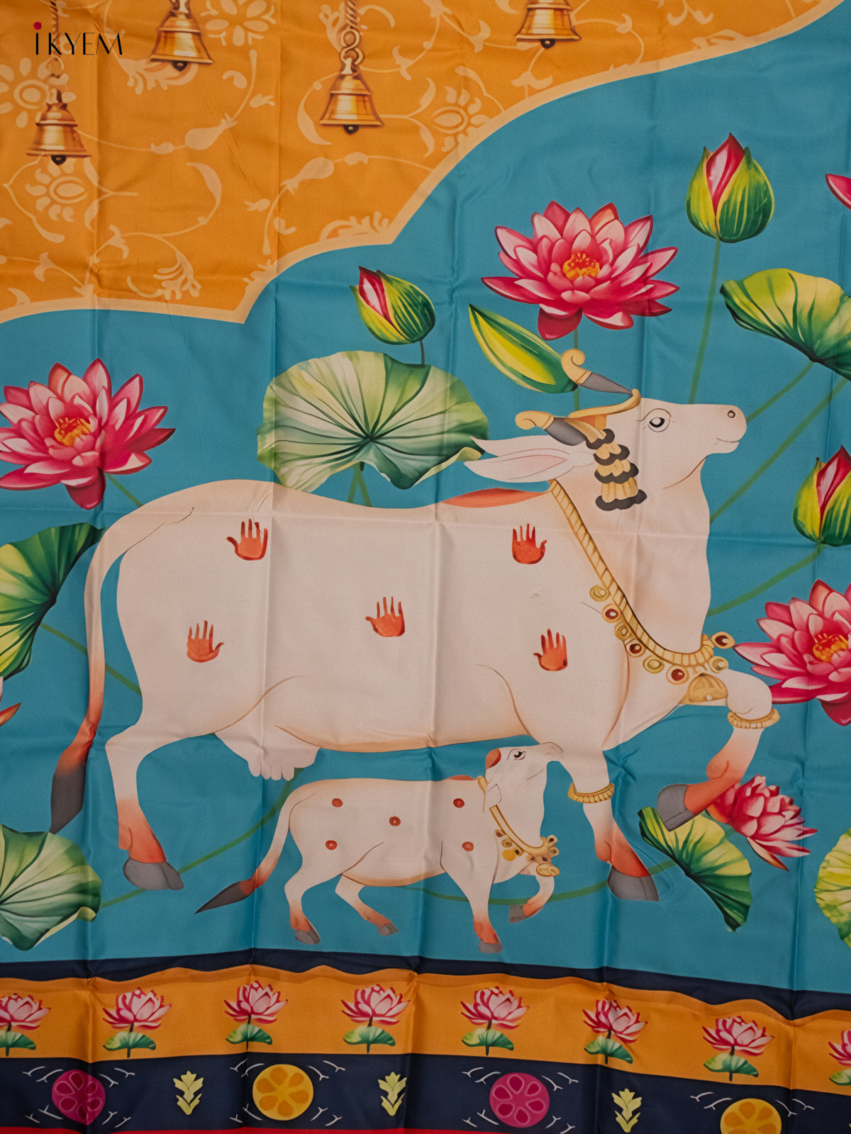 Pichwai Backdrop - Cow & calf Blue/yellow - (5×8 feet) - KH06127