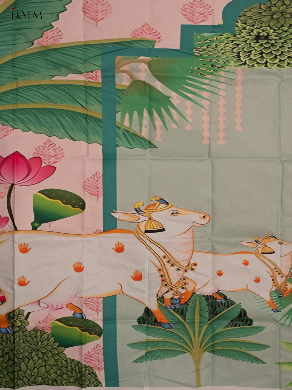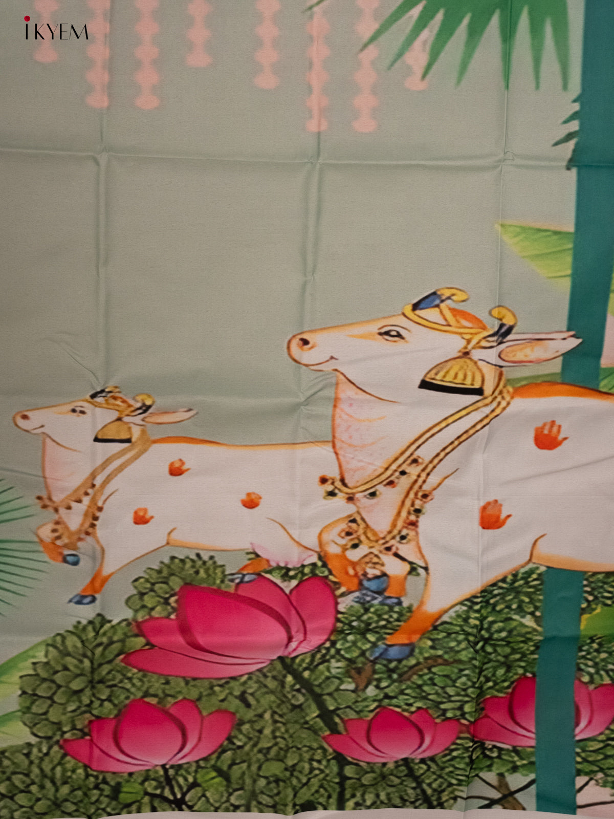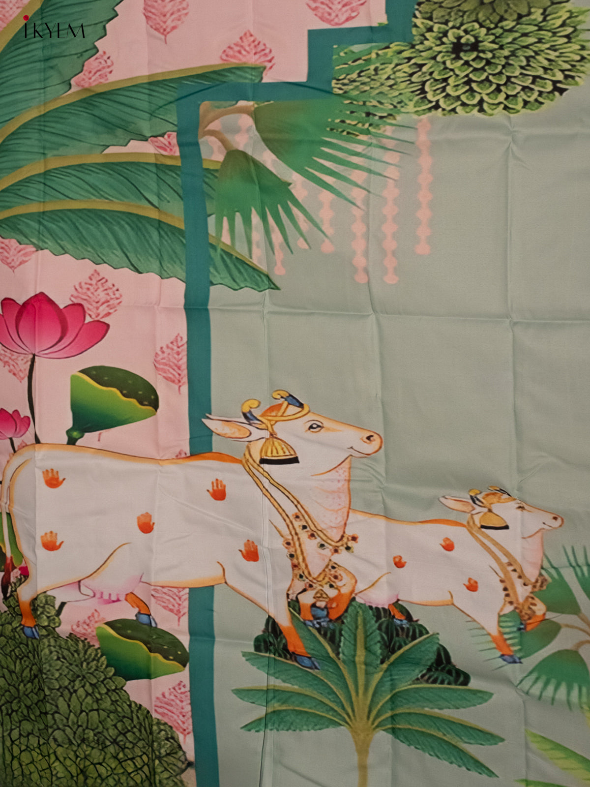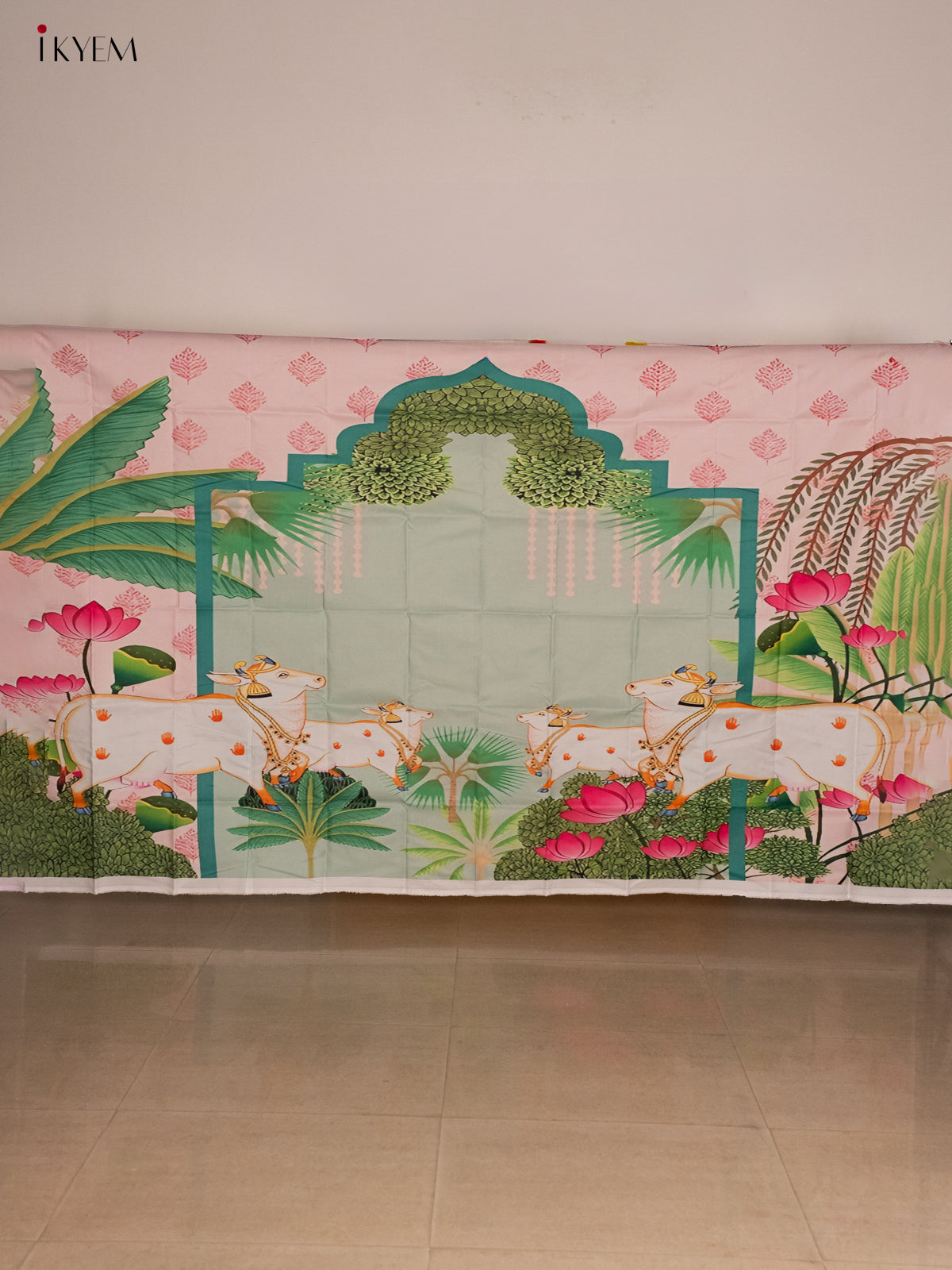 Pichwai Backdrop - Cow & calf Green/Pink - (5×8 feet) - KH06128