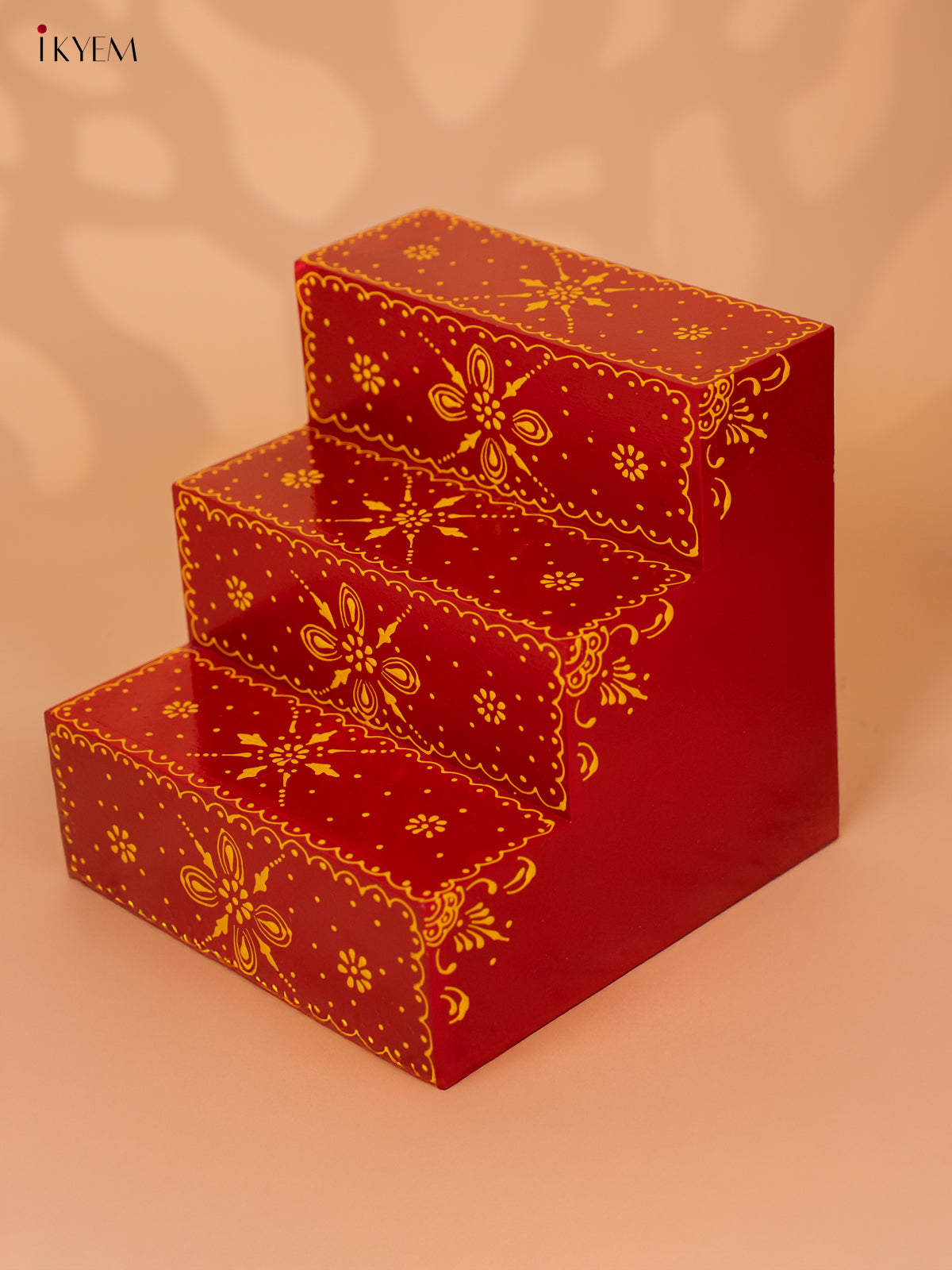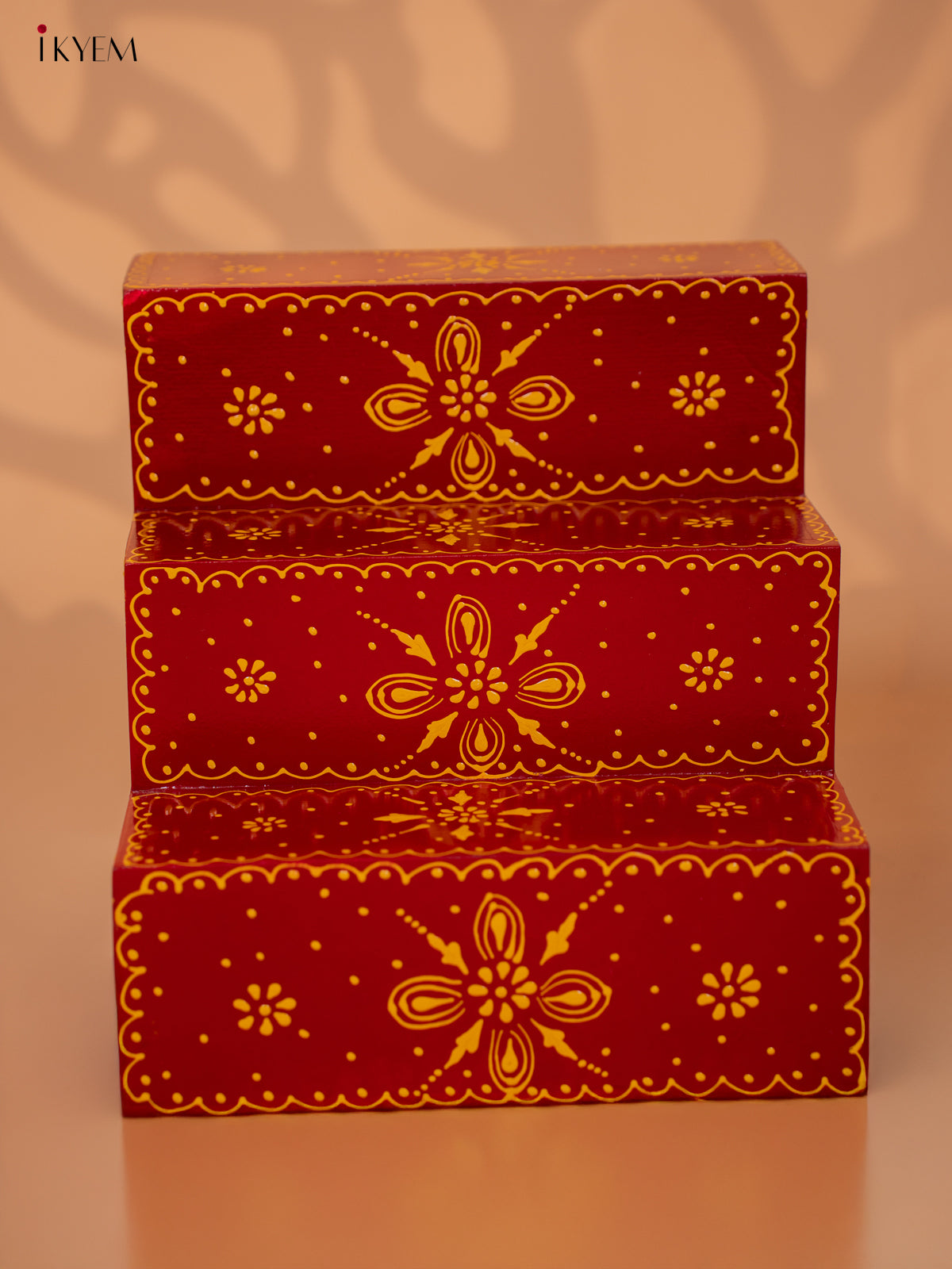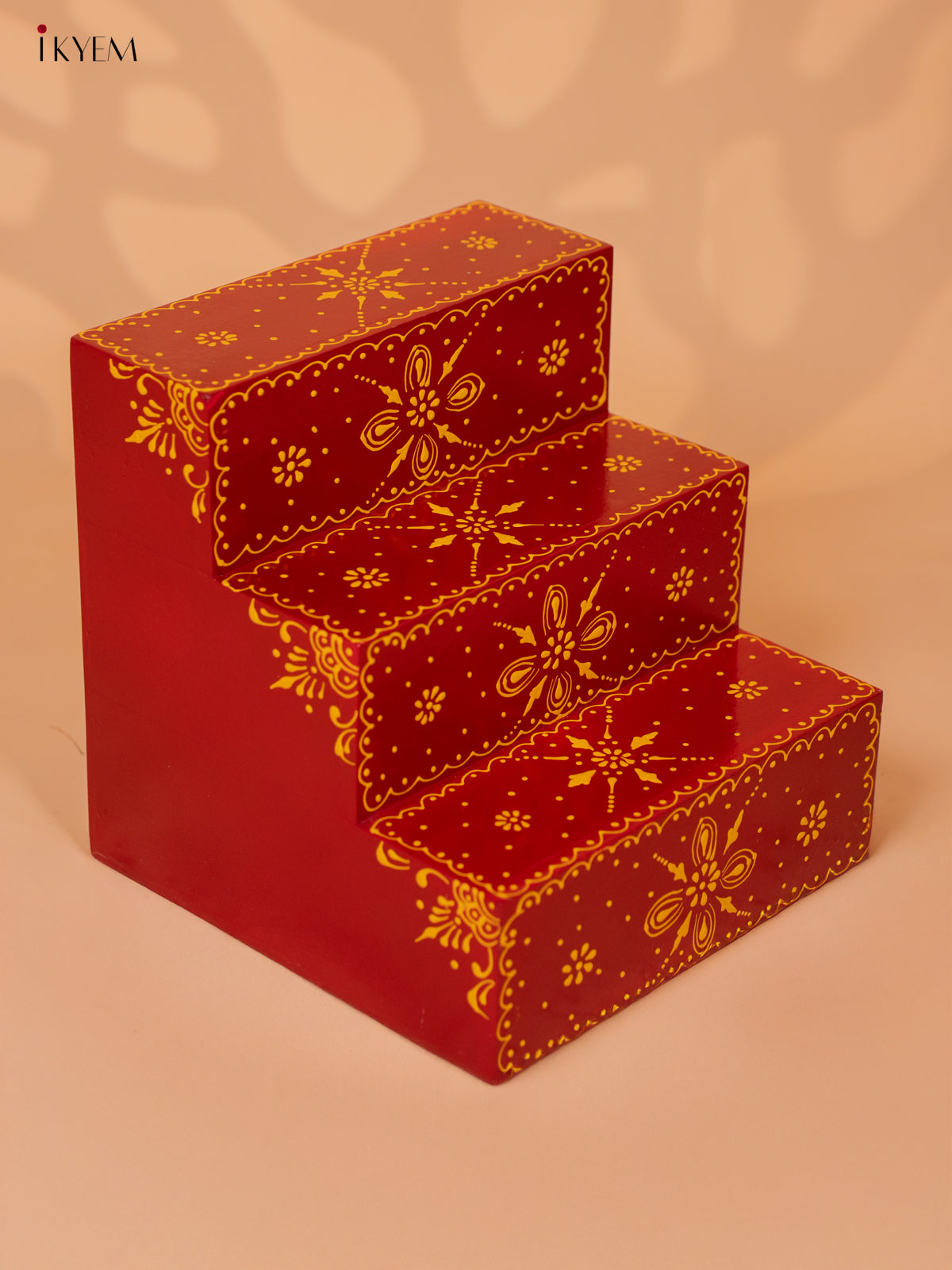 - Introducing our Wooden Handpainted 3-Step Golu Padi in Red with eye-catching designs embossed.