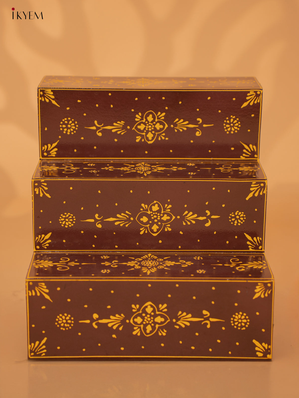 WOODEN HANDPAINTED 3-STEP GOLU PADI - COFFEE BROWN - KD18141