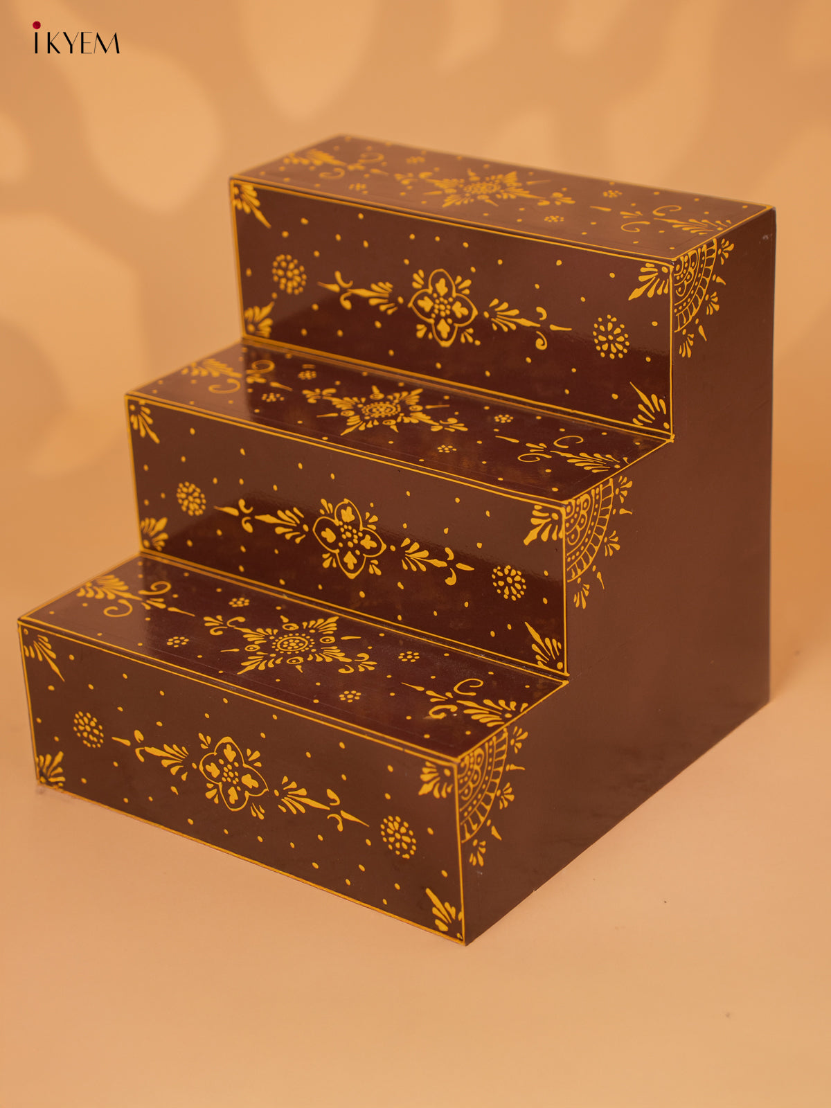 - Introducing our Wooden Handpainted 3-Step Golu Padi in coffee brown with eye-catching designs embossed.
