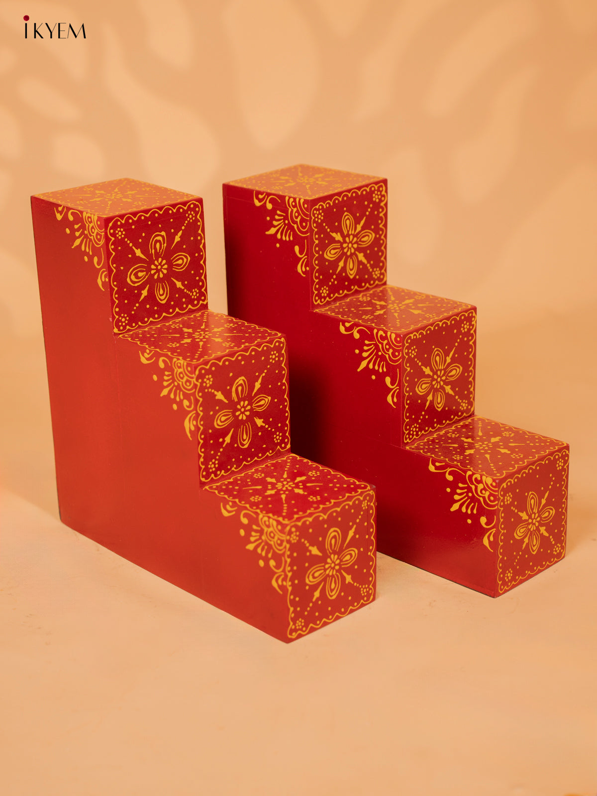 - Elevate your Navaratri & Diwali celebrations with our set of 2 wooden handpainted 3-step diya padi.