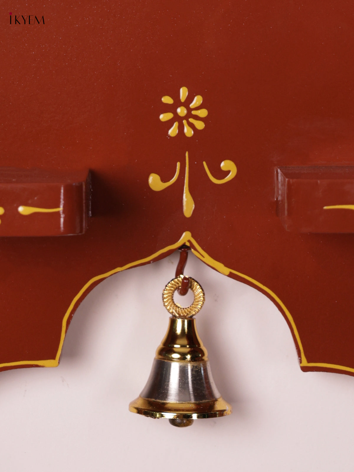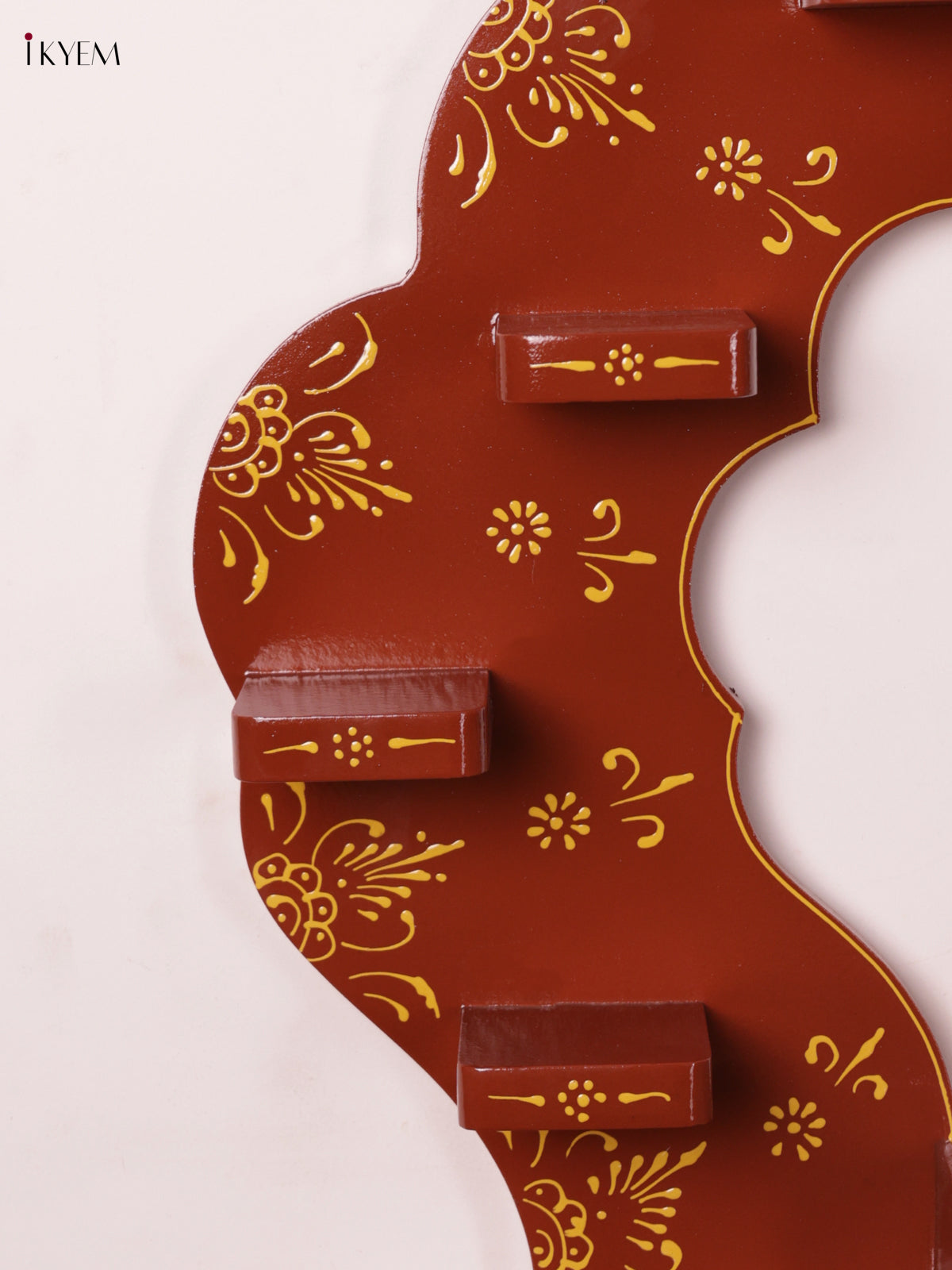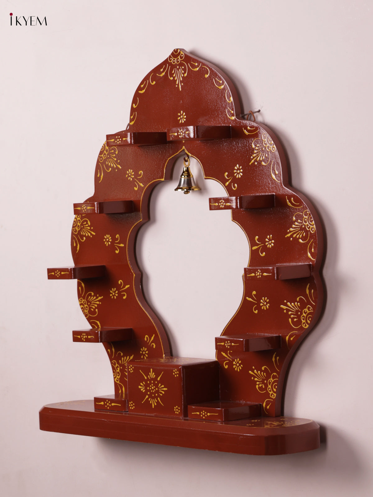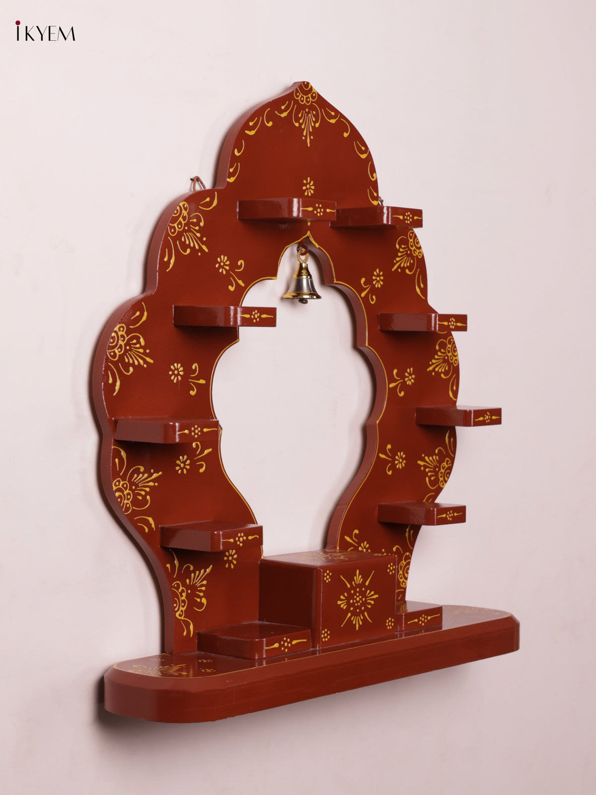 - This 20-inch Arch Wooden Hand Painted Wall Shelf in maroon is thoughtfully crafted to complement your Navaratri and Golu decor.