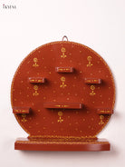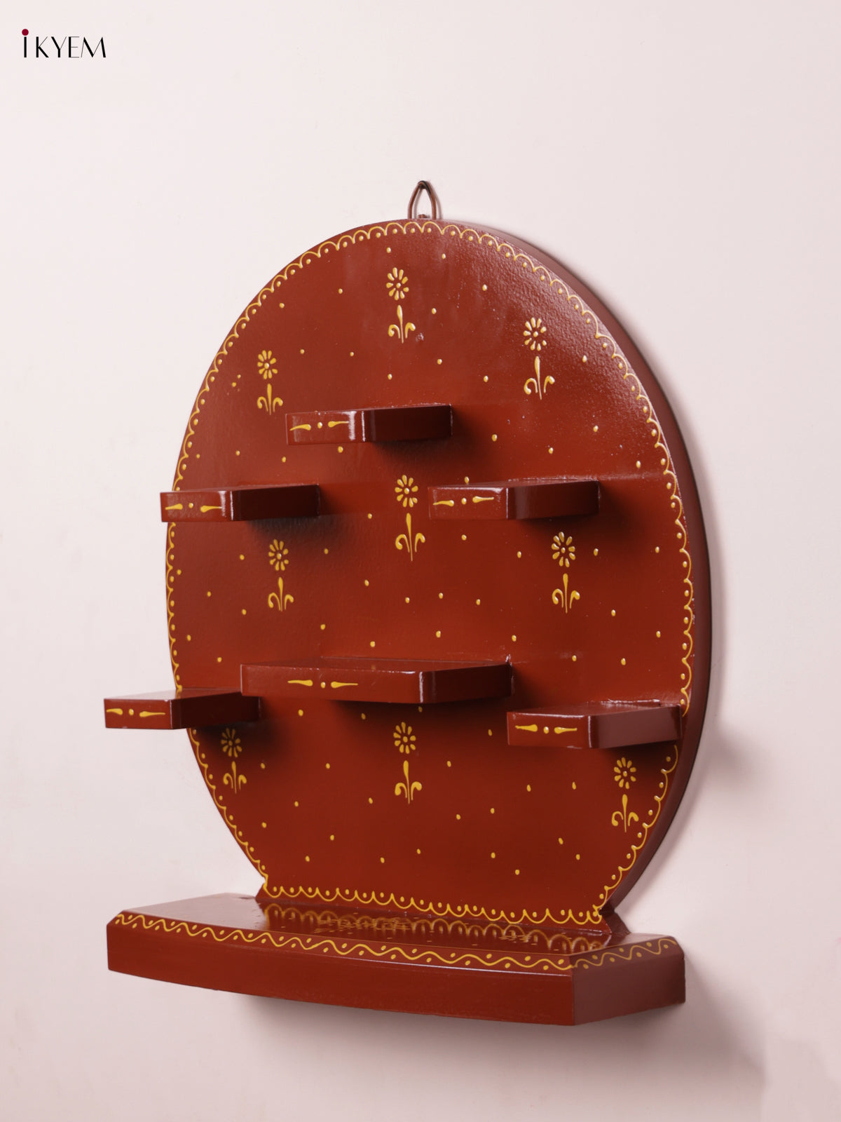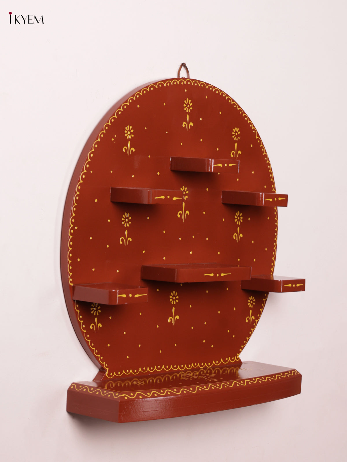 Wooden Hand Painted Round Wall Shelf - 16 Inches - Coffee Brown - KH12119