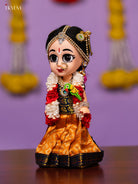 - This intricately dressed Andal doll features vibrant, ornamental embellishments that reflect traditional South Indian craftsmanship.